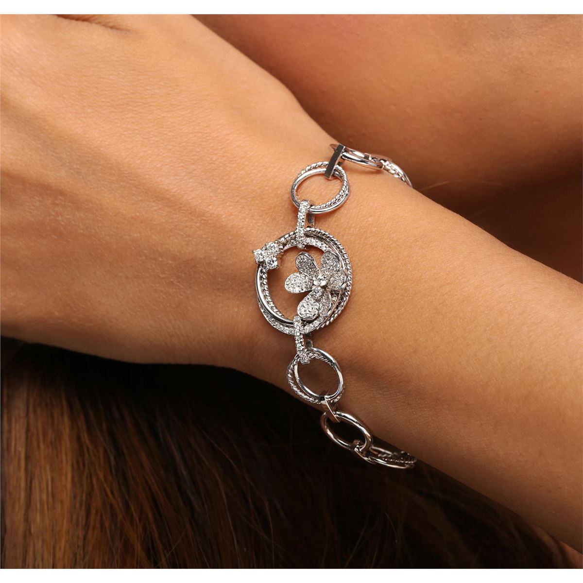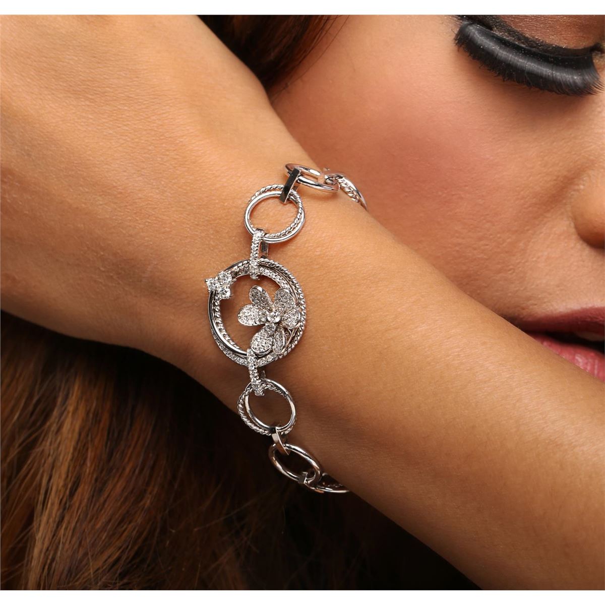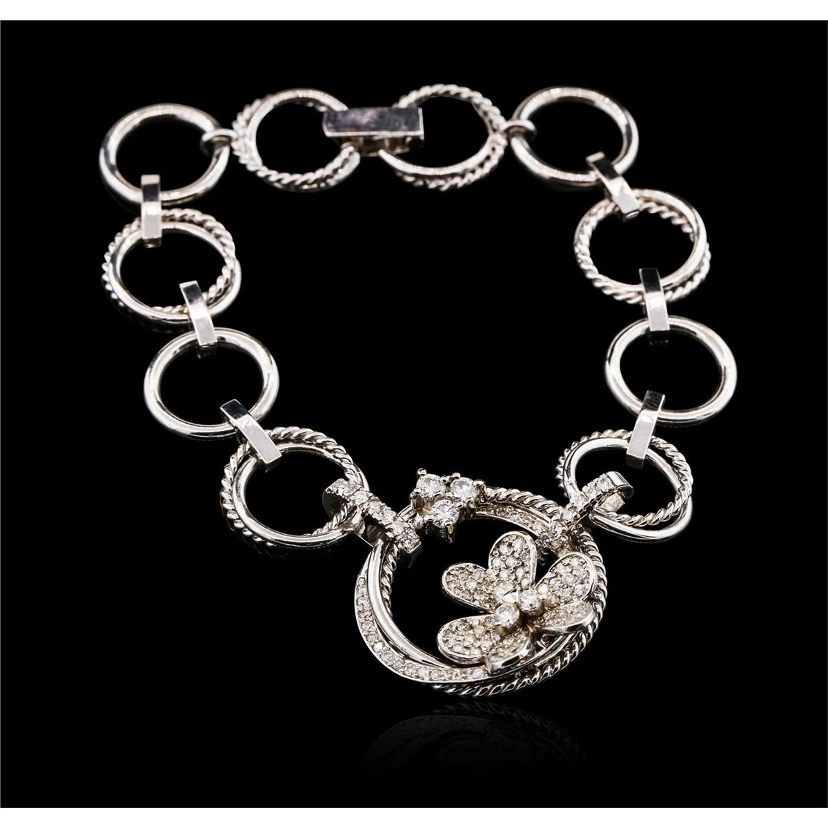 One electronically tested 14KT white gold ladies combination cast & assembled diamond bracelet with a hidden box clasp with safety closer with a bright polish finish. Measurements: 6.50 in length. Identified with markings of 585. Condition is new. Containing: One Hundred Four prong set round brilliant cut diamonds, measuring 2.20 - 1.10 x 0.99mm (depth est.) approximate total weight of 104 Stones = 1.00ct. Clarity: SI-2 to I-1. Color: I - J, Cut is Good. All diamonds are graded in the mounting, unless otherwise stated. Total Weight of Diamonds 1.00ct. Total Weight of Bracelet 16.30 grams. GGL Appraised at $6,145.00.