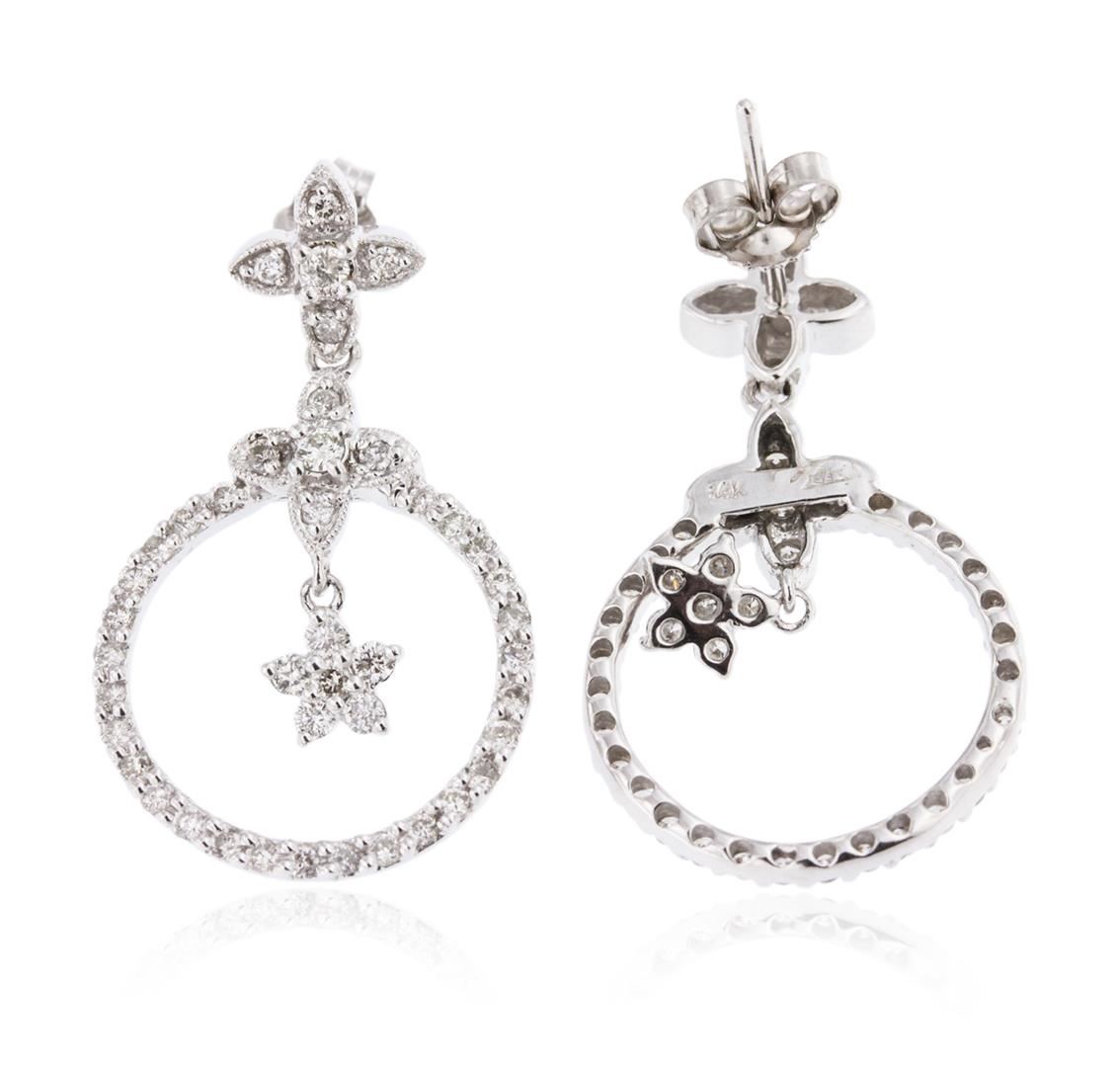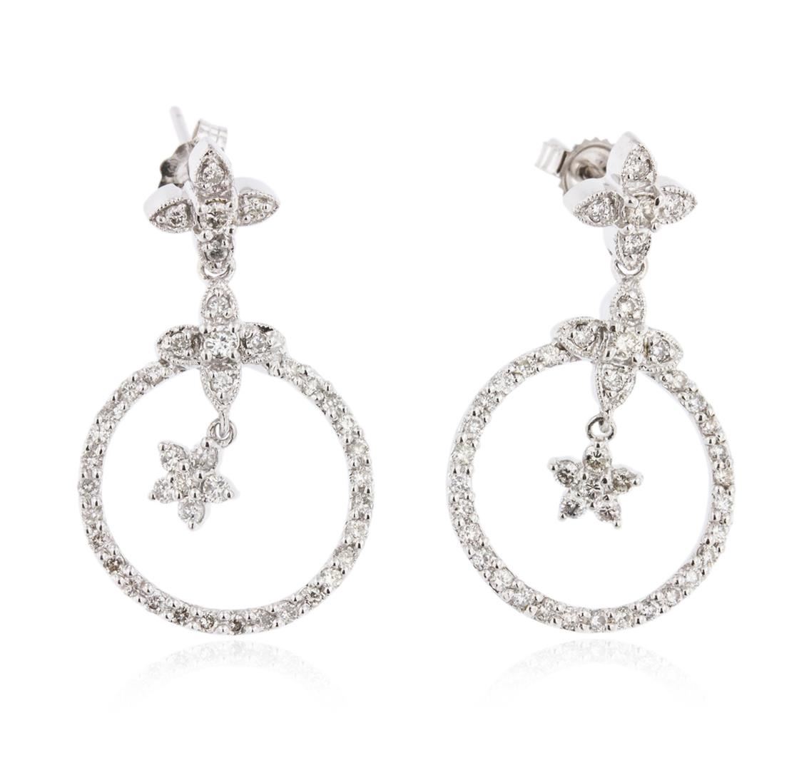 One pair of earrings featuring: 14KT white gold containing diamonds with a total weight of 1.00ct. Total weight of item 4.8 grams.