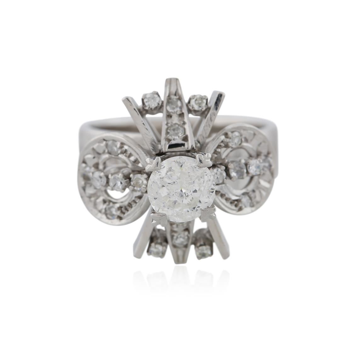 One ring featuring: 14KT white gold weighing 6.90 grams containing one diamond center stone with a total weight of 0.75ct and diamonds with a total weight of 0.25ct.