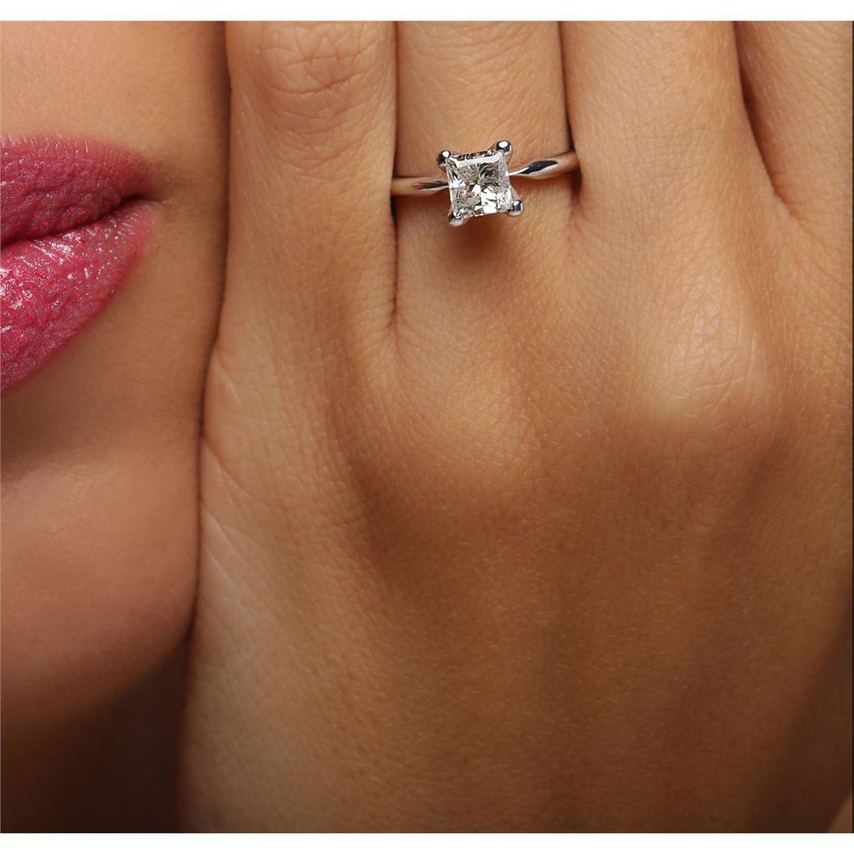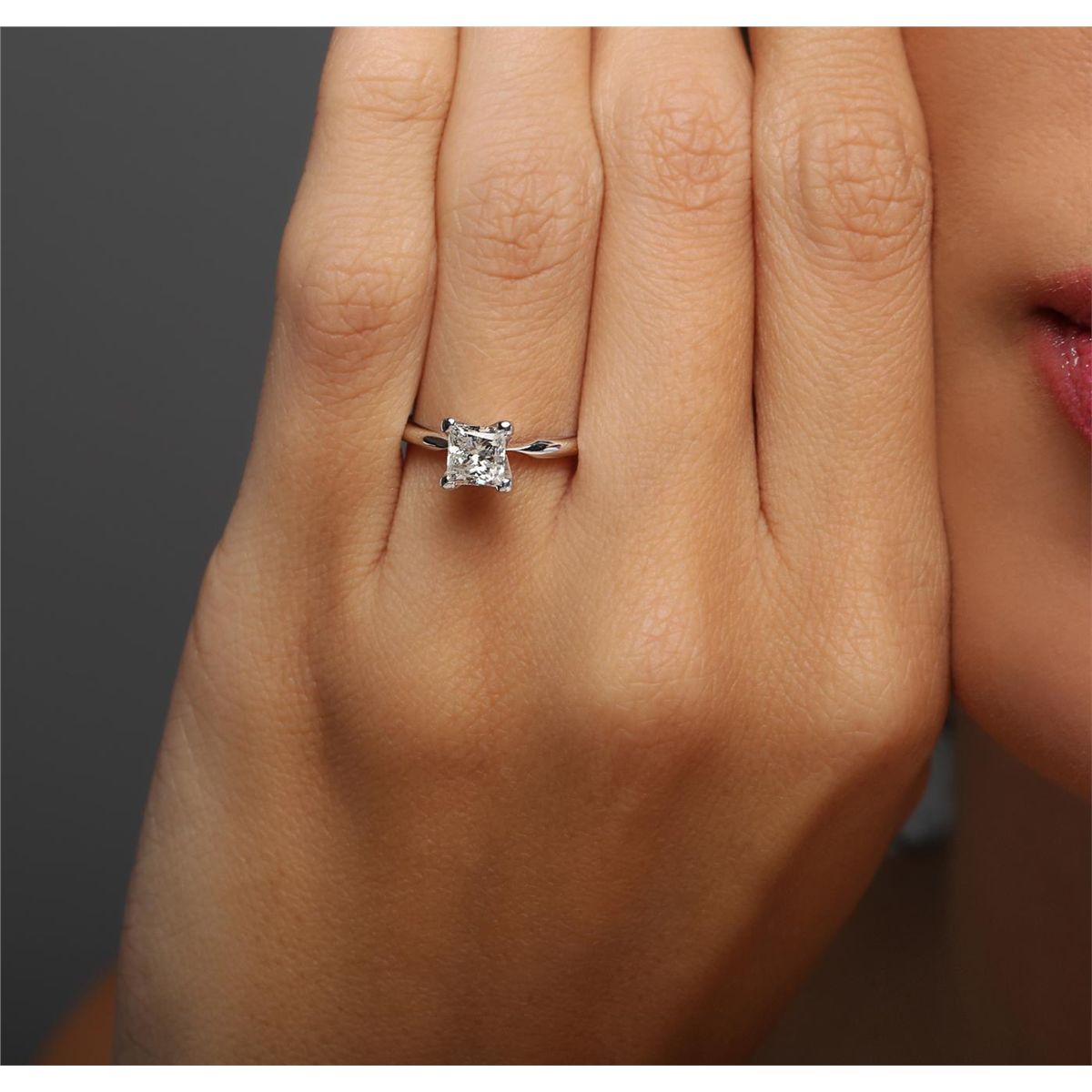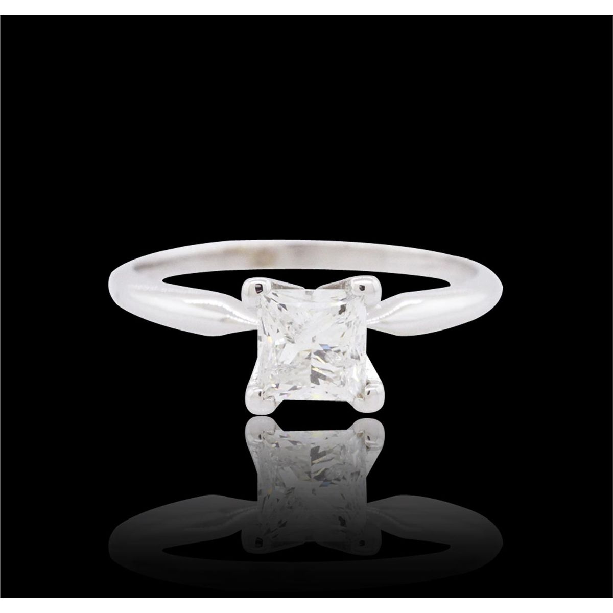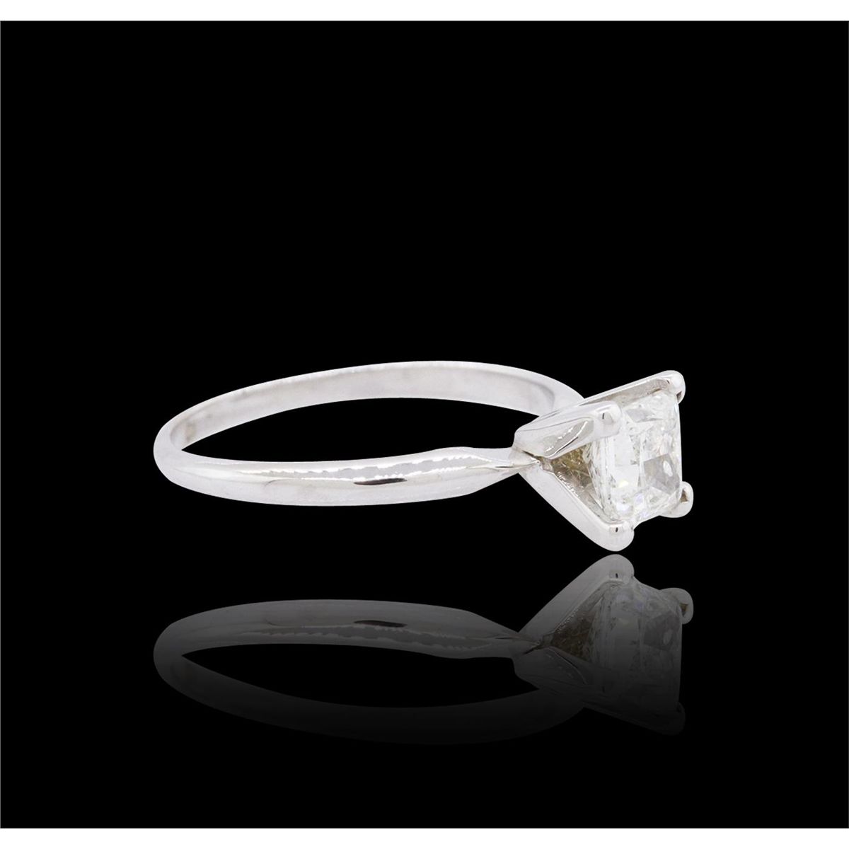 One solitaire ring featuring: 14KT white gold weighing 2.00 grams containing one princess cut center diamond with a total weight of 1.00ct.