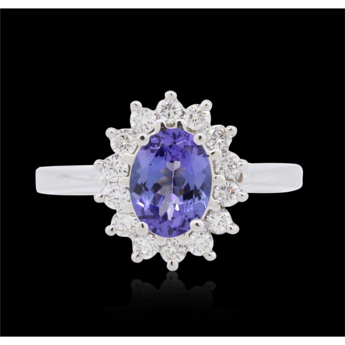 One ring featuring: 14KT white gold weighing 4.70 grams containing one tanzanite center stone with a total weight of 1.00ct and 14 brilliant cut diamonds with a total weight of 0.42cts.