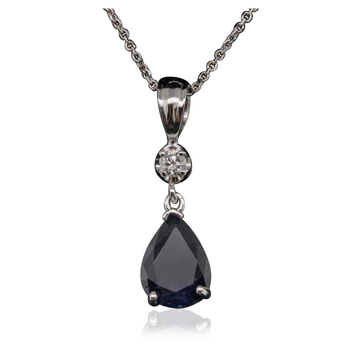 One pendant with chain featuring: 14KT White Gold with a total weight of 2.00 grams, Sapphire with a total weight of 1.00ct, and Diamonds with a total weight of 0.03ctw.
