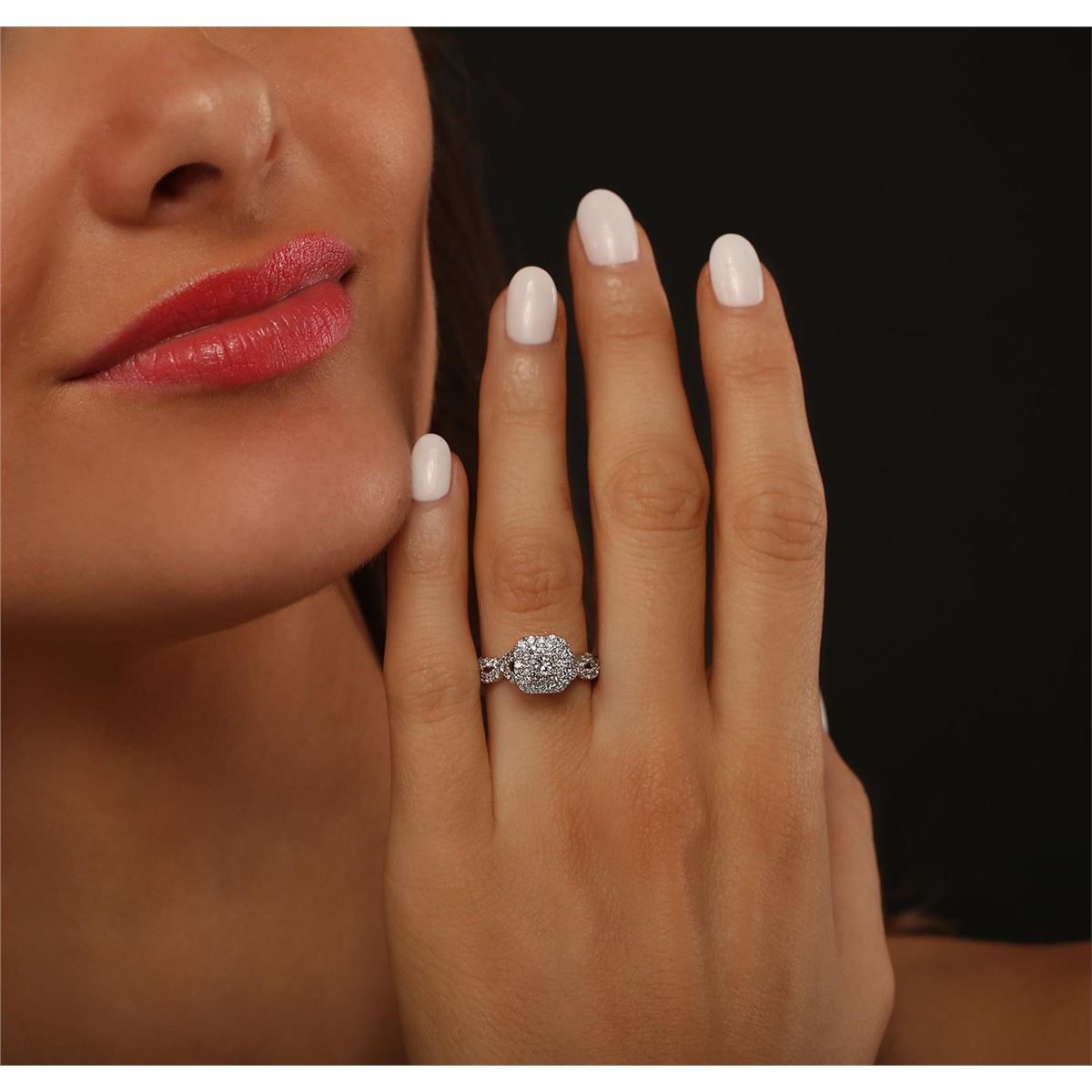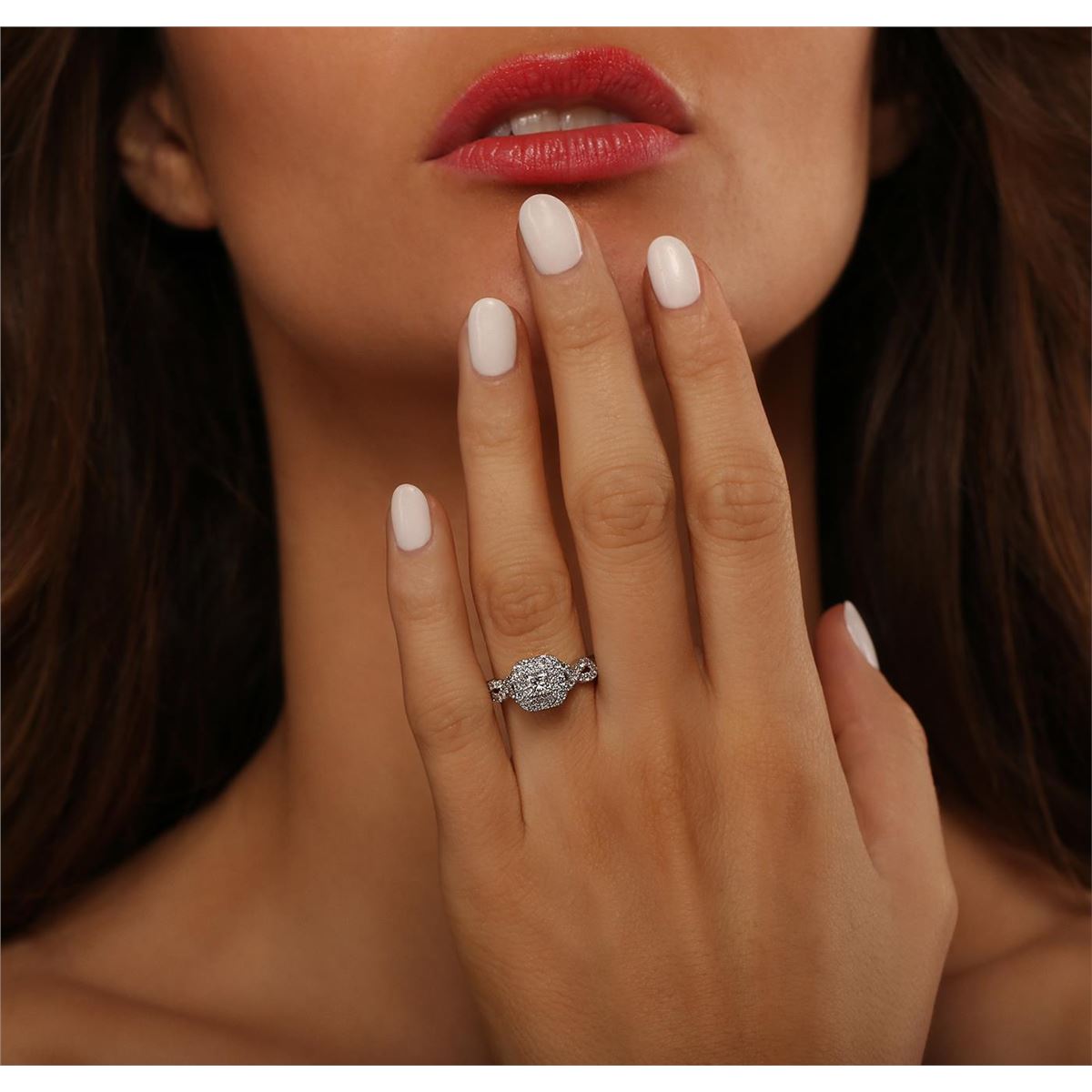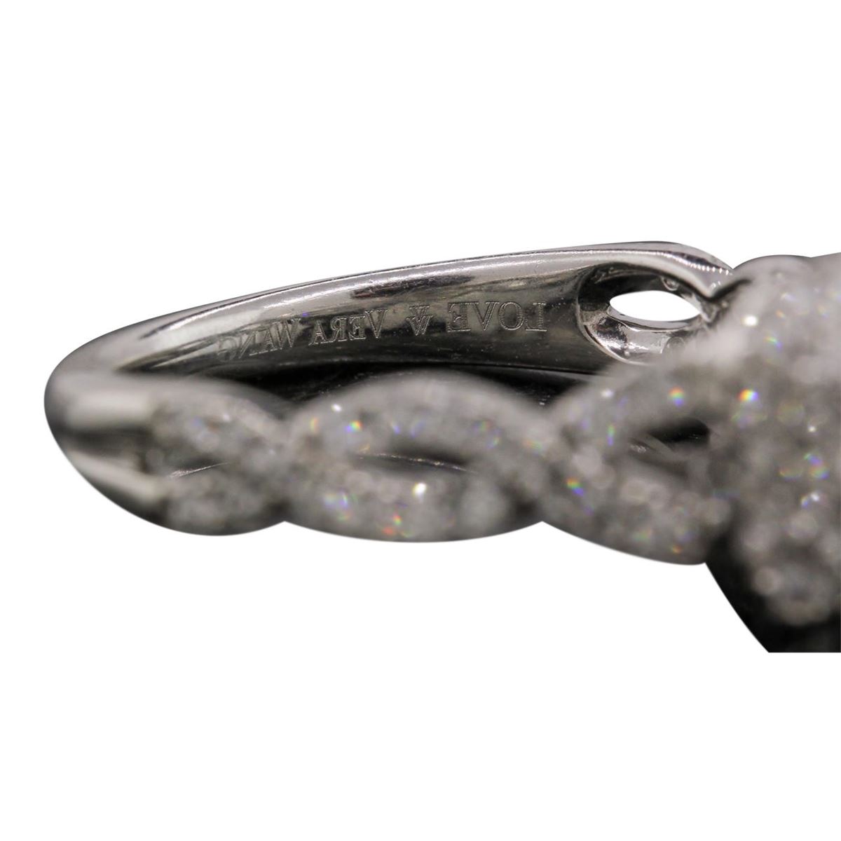 One electronically tested 14KT white gold ladies cast diamond unity ring with a bright polish finish. Condition is good. The ring is part of Vera Wang's LOVE Collection featuring a princess cut diamond set within two tiered diamond bezels supported by intertwining diamond set shoulders. Two princess cut blue sapphires accent the under gallery, completed by a two millimeter wide band. Trademark is LOVE VERA WANG. Identified with markings of "14KT". Containing: One prong set princess cut diamond, measuring 3.65 x 3.60 x 3.00mm (depth est.) approximate weight of 0.34ct. Graded in the setting. Clarity: SI-2. Color: HDepth 83.3%. Table 75.0%. Sixty-Eight prong set round brilliant cut diamonds, measuring 1.50 - 1.20 x 0.81mm (depth est.) approximate. Total Weight of 68 Stones = 0.66ct. Graded in the setting. Clarity: SI-2 to I-1. Color: H - I. Total Weight of Diamonds 1.00ct. Total Weight of Ring 4.51 grams. AIG Appraised at $2,800.00.