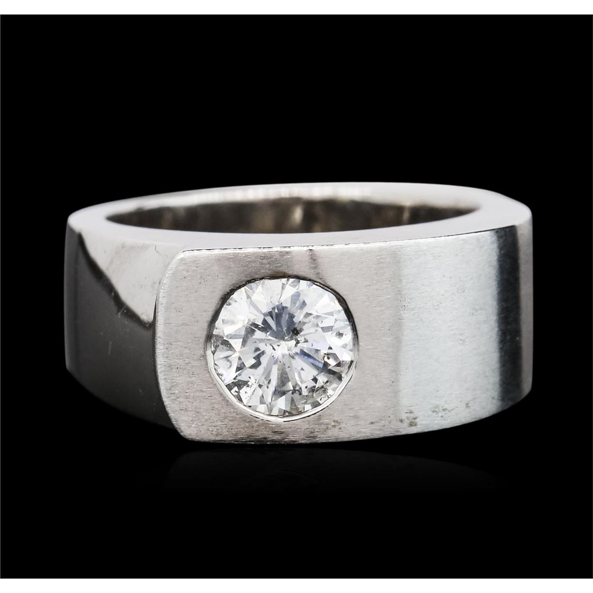 One electronically tested 14KT white gold ladies cast diamond solitaire ring with a bright and satin finish. The ring is completed by a five millimeter wide band. Identified with markings of "K14". Condition is good. Containing: One flush set round brilliant cut diamond, measuring 6.50 - 6.40 x 3.65mm (depth est.) approximate weight of 1.02ct with a medium blue fluorescence. Graded in the setting. Clarity: I-1. Color: H. Depth 56.6%. Table 60.5%. Total Weight of Diamonds 1.02ct. Total Weight of Ring 11.97 grams. AIG Appraised at $13,480.00.