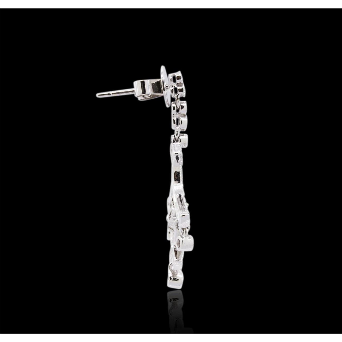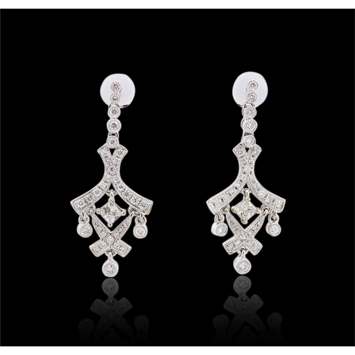 One pair of earrings featuring: 14KT white gold weighing 5.00 grams containing two diamond center stones with a total weight of 0.39cts and round cut diamonds with a total weight of 0.63cts.