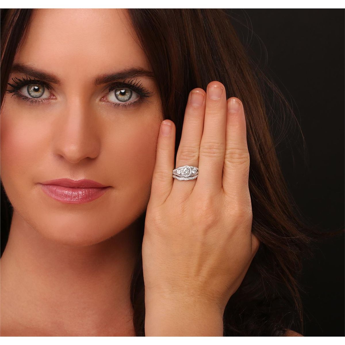 One electronically tested 14KT white gold ladies combination cast & assembled engagement ring & wedding band with a bright polish finish. Identified with markings of "14K". Condition is new. Containing: One prong set round brilliant cut diamond, measuring 4.50 - 4.50 x 2.70mm (depth est.) approximate weight of 0.33ct. Clarity: SI-2. Color: K, Cut is Good. Two prong set round brilliant cut diamonds, measuring 3.40 - 3.40 x 2.04mm (depth est.) approximate total weight of 2 Stones = 0.29ct. Clarity: I-1. Color: J, Cut is Good. Fifty-One prong set round brilliant cut diamonds, measuring 1.30 - 1.30 x 0.78mm (depth est.) approximate total weight of 51 Stones = 0.41ct. Clarity: I-1 to I-2. Color: H - I, Cut is Good. All diamonds are graded in the mounting, unless otherwise stated. Total Weight of Diamonds 1.03ct. Total Weight of Ring & Wedding Band 5.50 grams. GGL Appraised at $5,075.00.