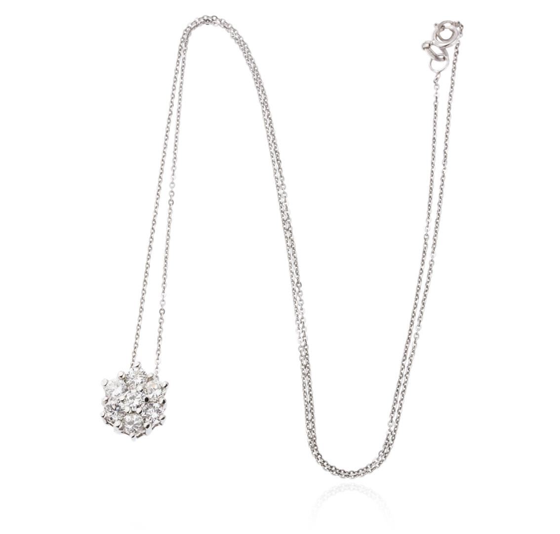One pendant with chain featuring: 14KT white gold weighing 2.60 grams containing round diamonds weighing a total of 1.04ct.