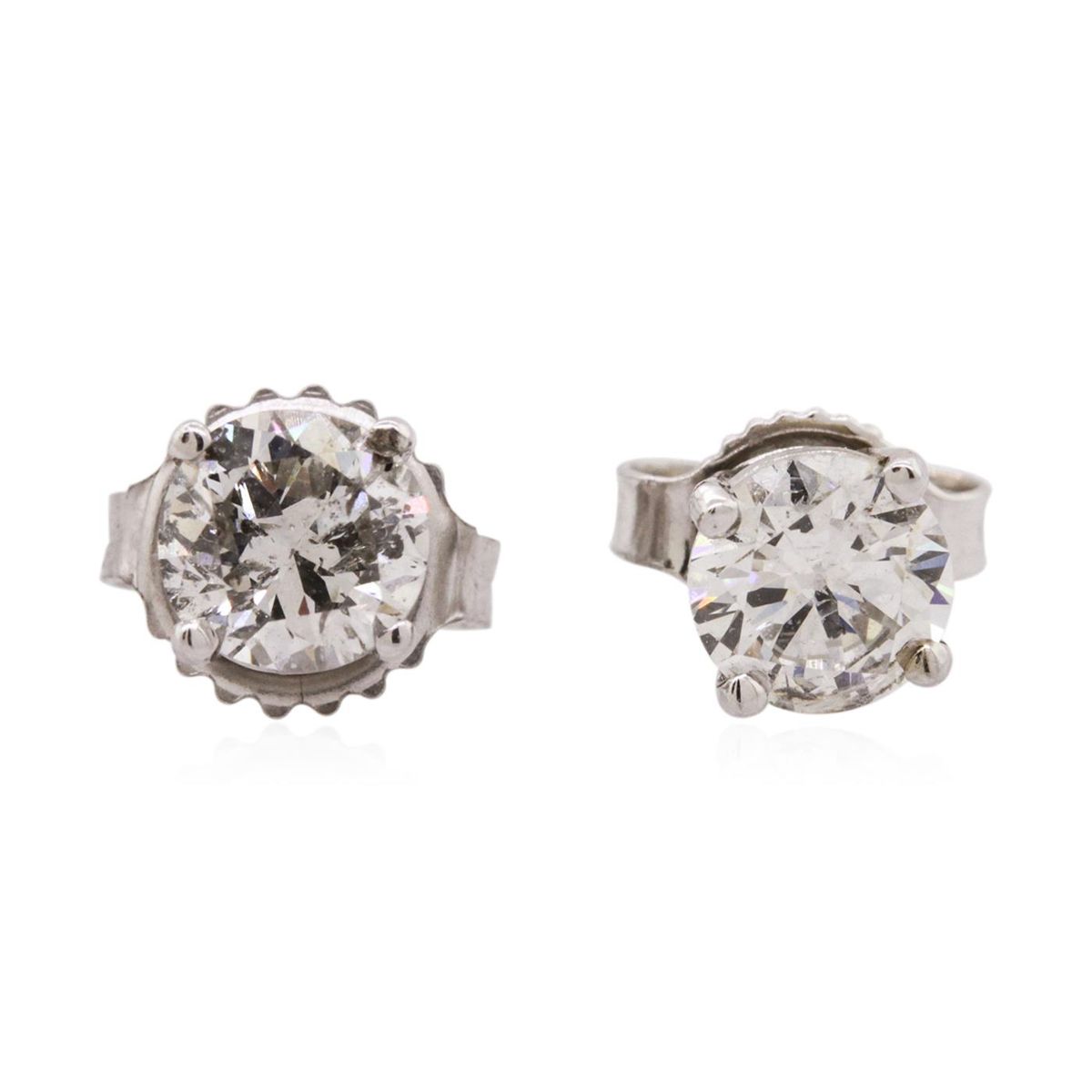 One pair of stud earrings featuring: 14KT white gold containing two round diamonds with a total weight of 1.04cts.