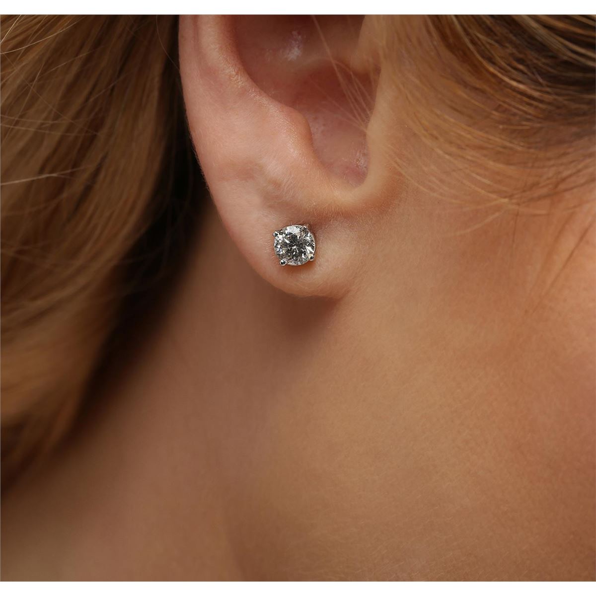 One pair of stud earrings featuring: 14KT white gold containing two round diamonds with a total weight of 1.04cts.