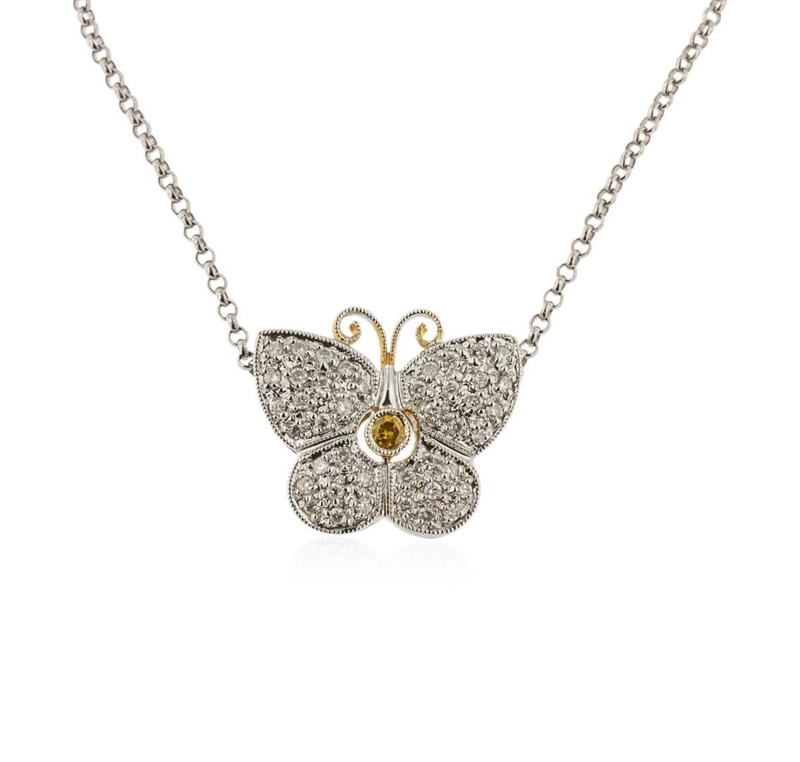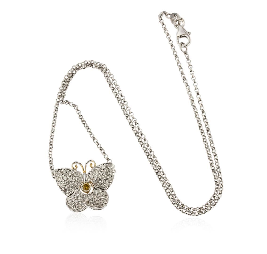 One pendant with chain featuring: 14KT white gold weighing 5.36 grams containing diamonds with a total weight of 1.05ct.
