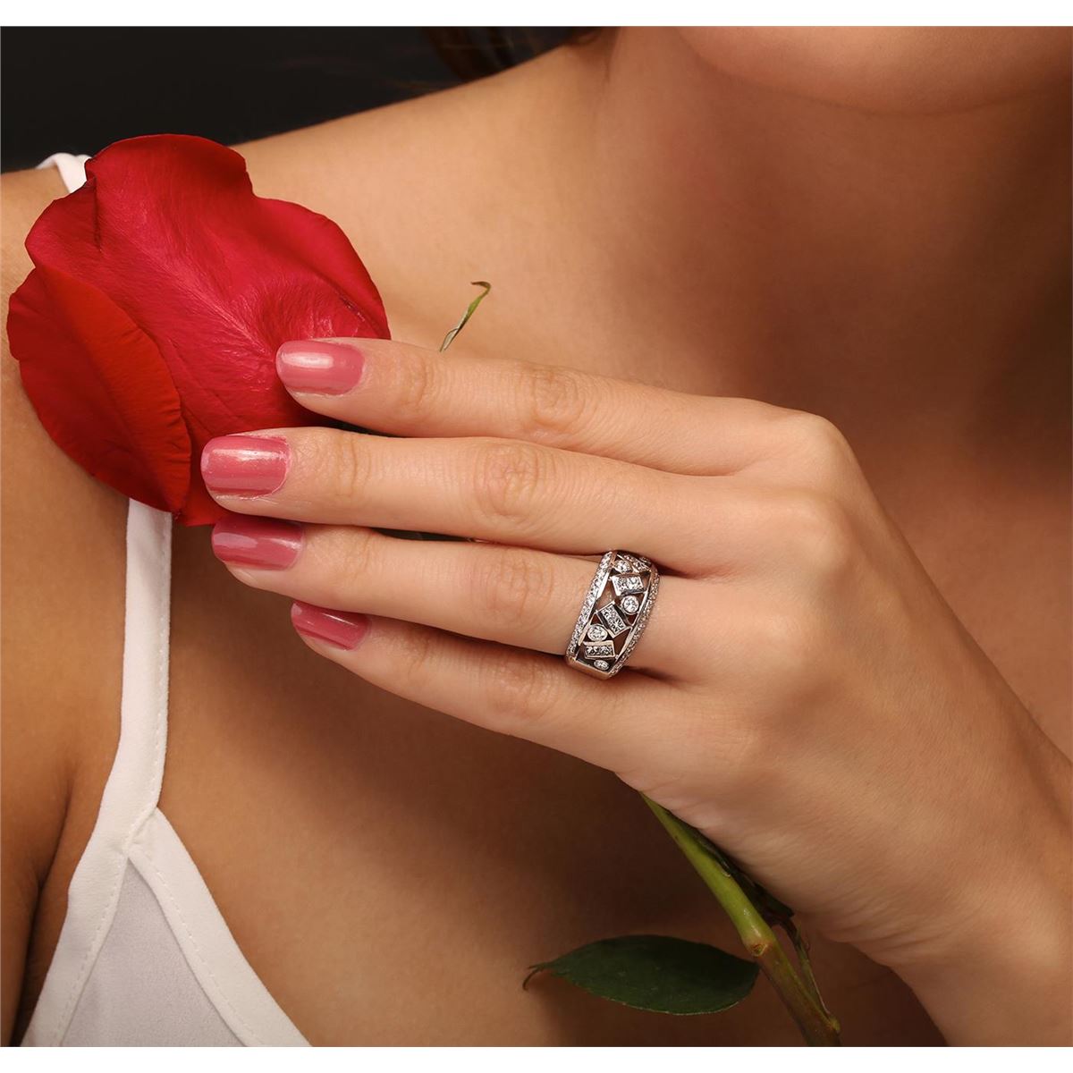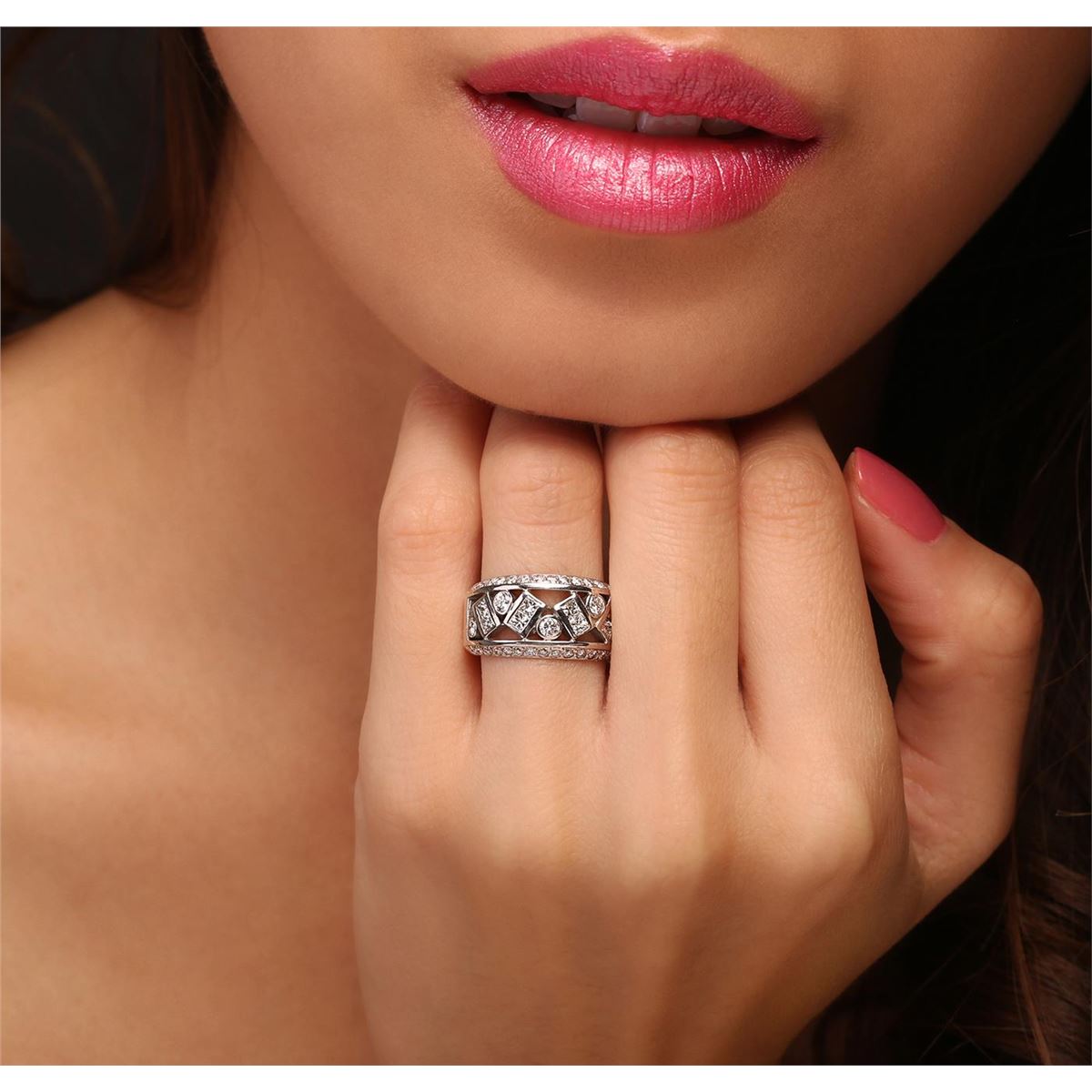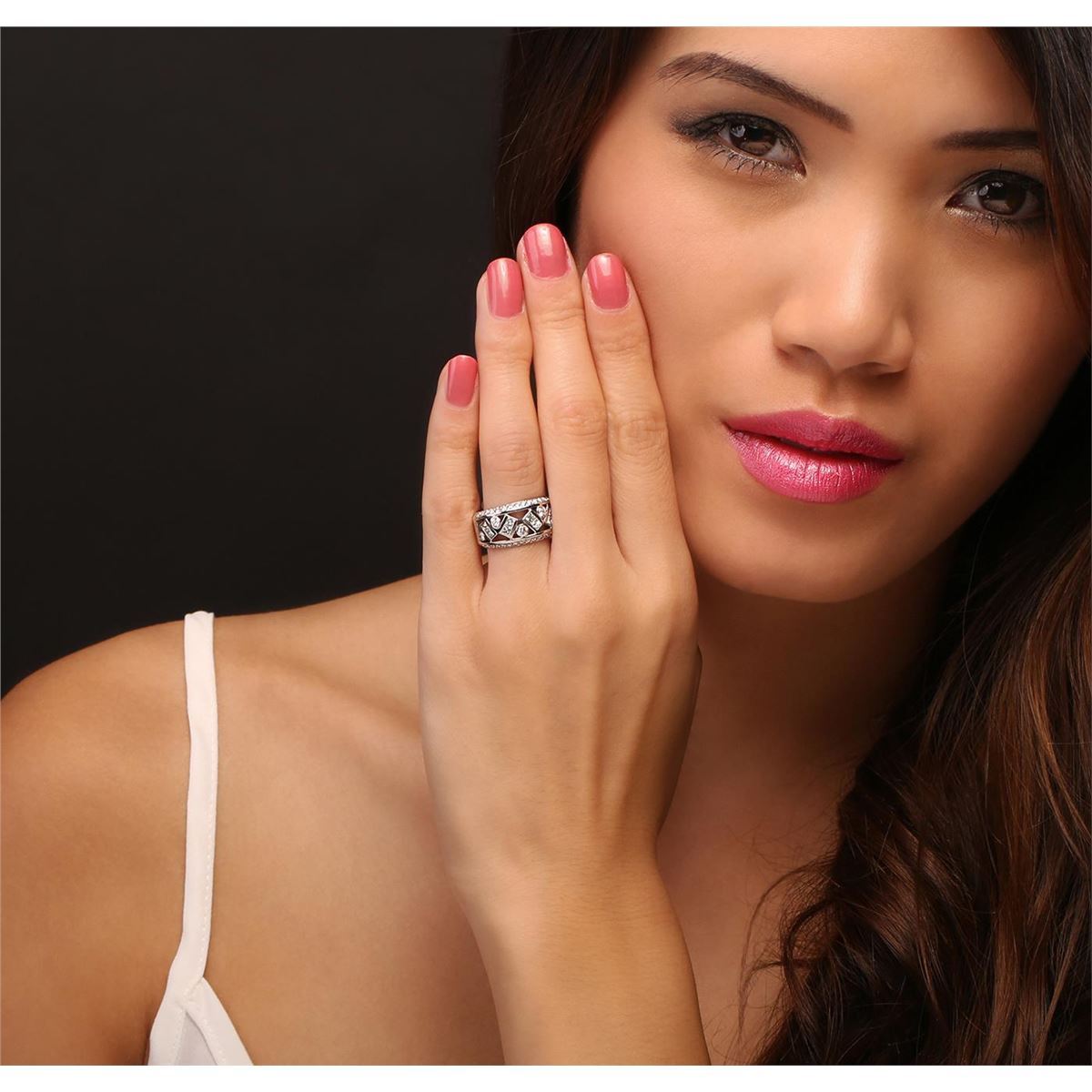 One electronically tested 14KT white gold Ladies combination cast & assembled ring with a bright polish finish. Condition is very good. Identified with markings of "14K". Containing: Eight channel set princess cut diamonds, measuring 2.00 x 2.00 x 1.50mm (depth est.) approximate. Total Weight of 8 Stones = 0.39ct. Clarity: VS-2. Color: H - I, Cut is Good. Five bezel set round brilliant cut diamonds, measuring 2.50 - 2.50 x 1.50mm (depth est.) approximate. Total Weight of 5 Stones = 0.29ct. Clarity: SI-1 to SI-2. Color: H - I, Cut is Good. Thirty bead set round brilliant cut diamonds, measuring 1.50 - 1.50 x 0.90mm (depth est.) approximate. Total Weight of 30 Stones = 0.37ct. Clarity: SI-1 to SI-2. Color: H - I, Cut is Good. All diamonds are graded in the mounting, unless otherwise stated. Total Weight of Diamonds 1.05ct. Total Weight of Ring 7.50 grams.. GGL Appraised at $5,570.00.
