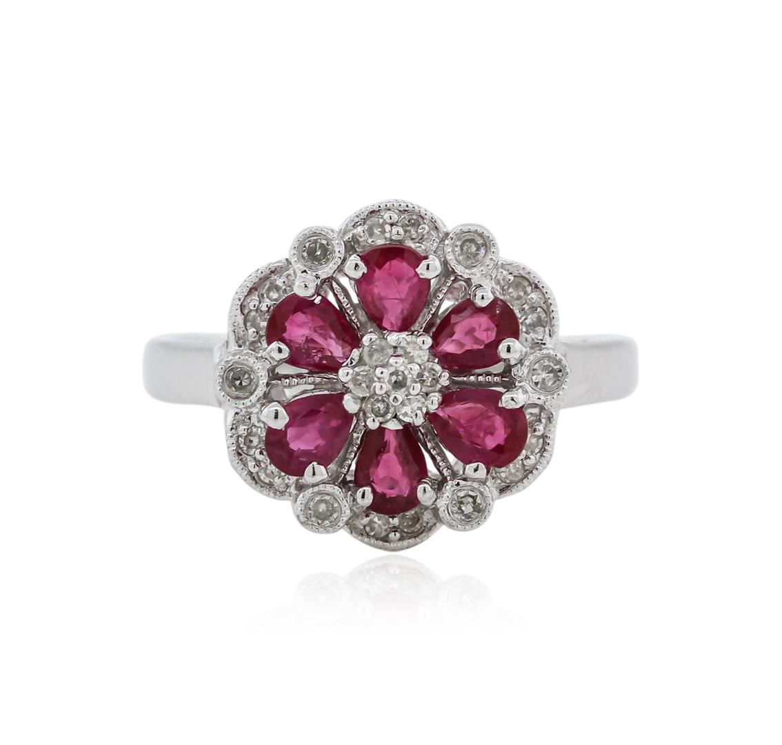 One ring featuring: 14KT white gold weighing 3.51 grams containing six rubies with a total weight of 1.06ct and 25 diamonds with a total weight of 0.17ct.
