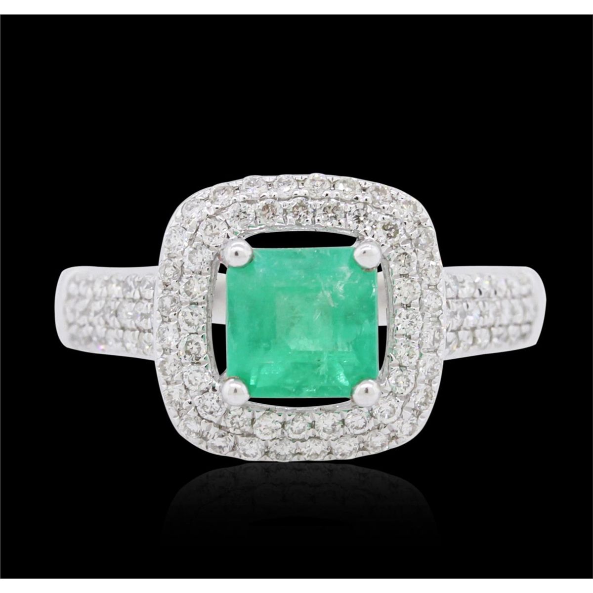 One ring featuring: 14KT white gold weighing 3.27 grams containing one emerald center stone with a total weight of 1.08ct and 94 round diamonds with a total weight of 0.51cts.