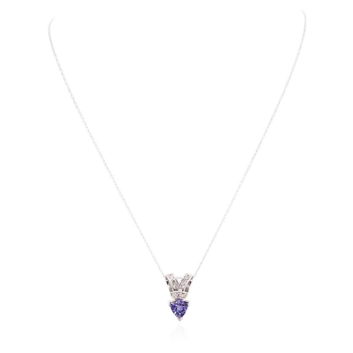 One pendant with chain featuring: 14KT white gold weighing 2.64 grams containing one tanzanite with a total weight of 1.08ct and round diamonds with a total weight of 0.20cts.