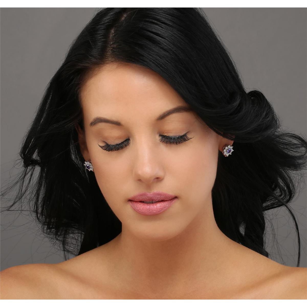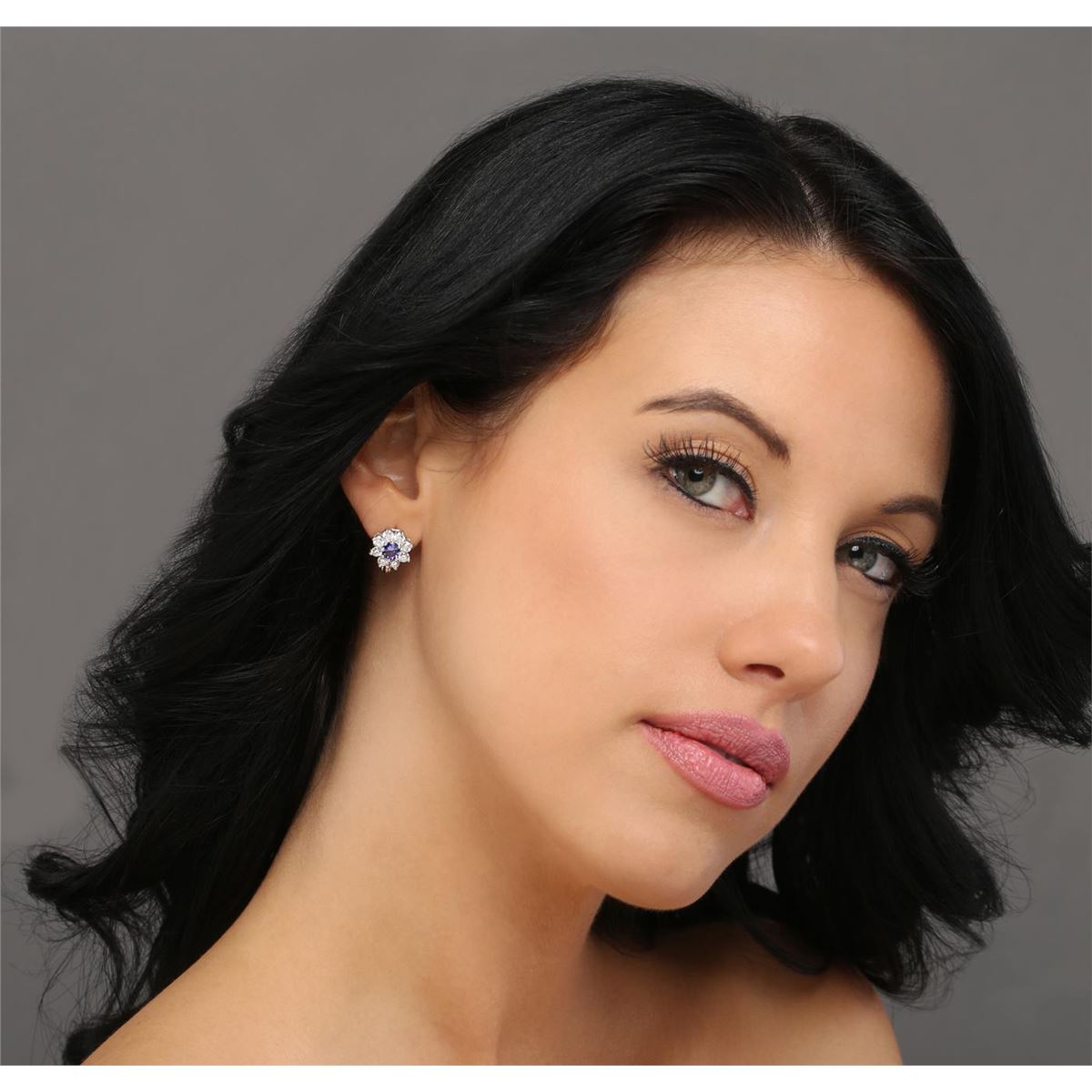 One pair electronically tested 14KT white gold ladies combination cast & assembled tanzanite and diamond earrings with hinged clip backs with a bright polish finish. Identified with markings of "14K". Condition is new. Containing: Two prong set round modified brilliant cut natural tanzanites, measuring 5.00 - 5.00 x 3.25 mm, approximate total weight of 1.08ct., clarity is eye clean, type I, medium light, very slightly grayish, violet color, (GIA V 4/3), cut is good. Sixteen prong set round brilliant cut diamonds, measuring 3.00 - 3.00 x 1.80mm (depth est.) approximate total weight of 16 Stones = 1.58ct. Clarity: SI-2 to I-2. Color: I - J, Cut is Good. Colored gemstones are presumed to have been subjected to commonly used enhancement processes. All diamonds and colored gemstones are graded in the mounting, unless otherwise stated. Total Weight of Colored Stones 1.08ct. Total Weight of Diamonds 1.58ct. Total Weight of Earrings 6.10 grams. GGL Appraised at $5,415.00.