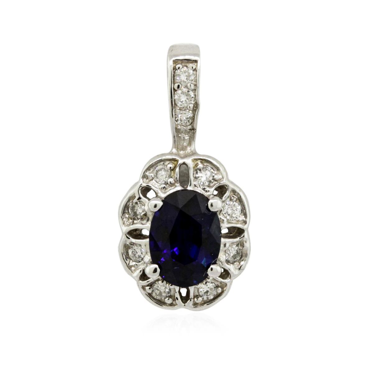 One pendant featuring: 14KT white gold weighing 1.57 grams containing one blue sapphire with a total weight of 1.09ct and diamonds with a total weight of 0.13ct.