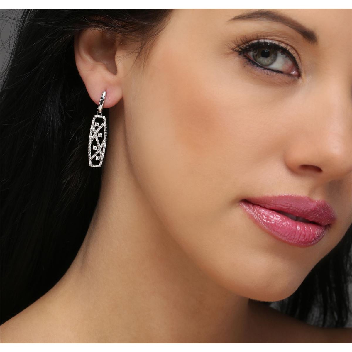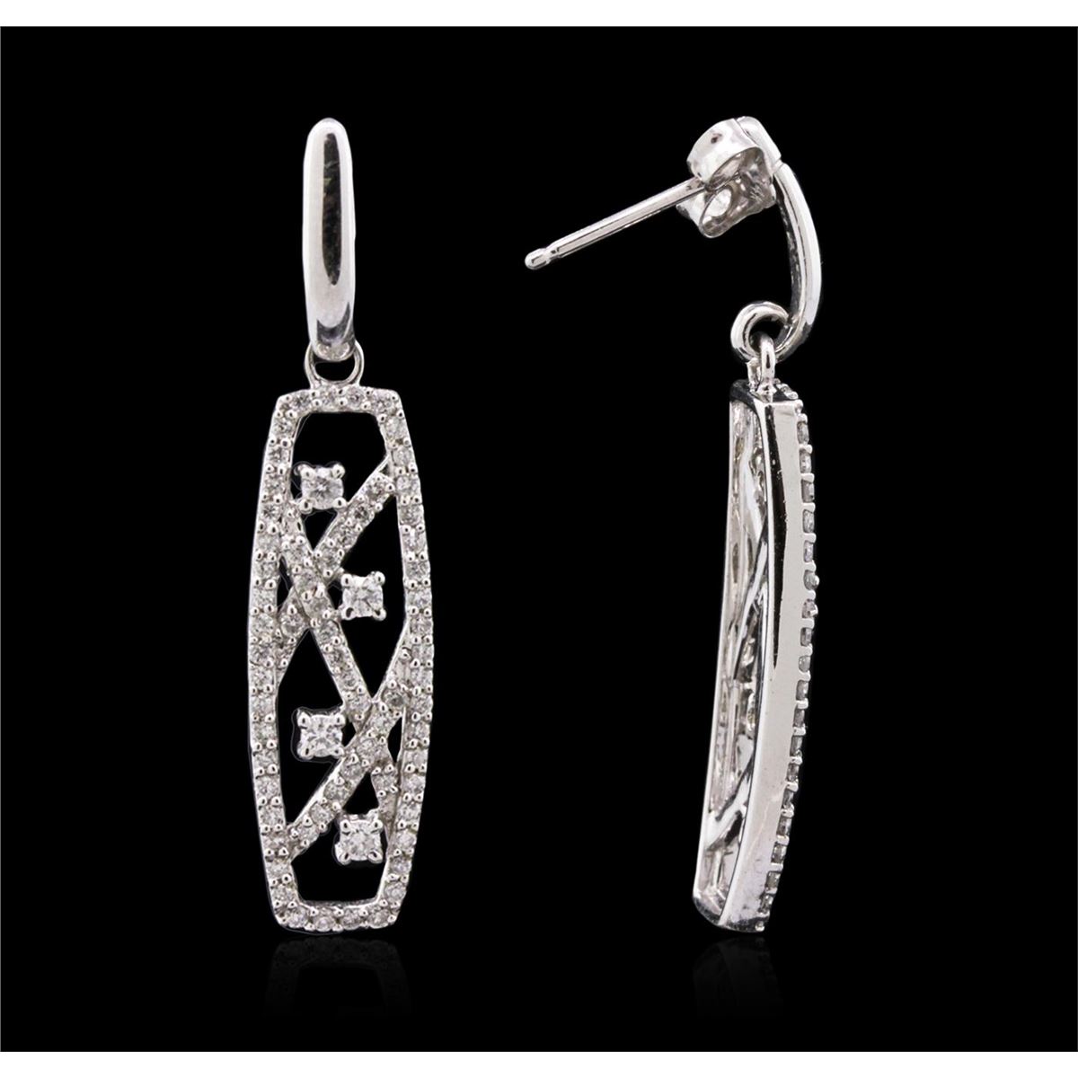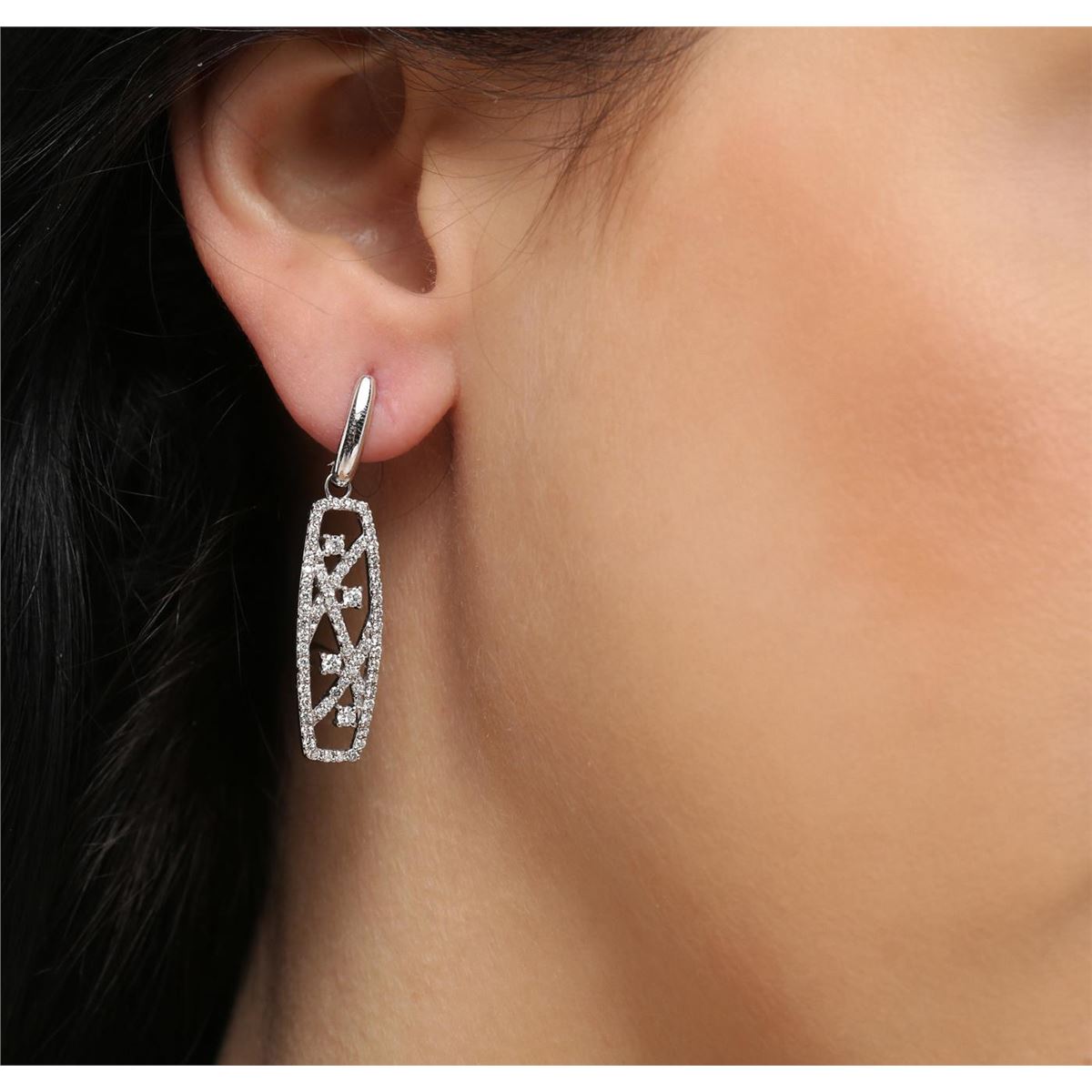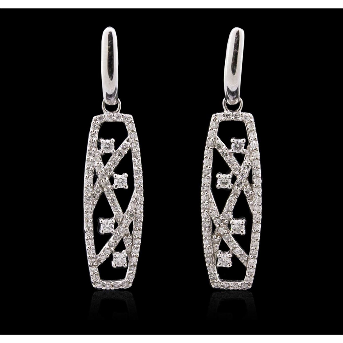One pair of earrings featuring: 14KT white gold weighing 5.70 grams containing diamonds with a total weight of 1.09cts.