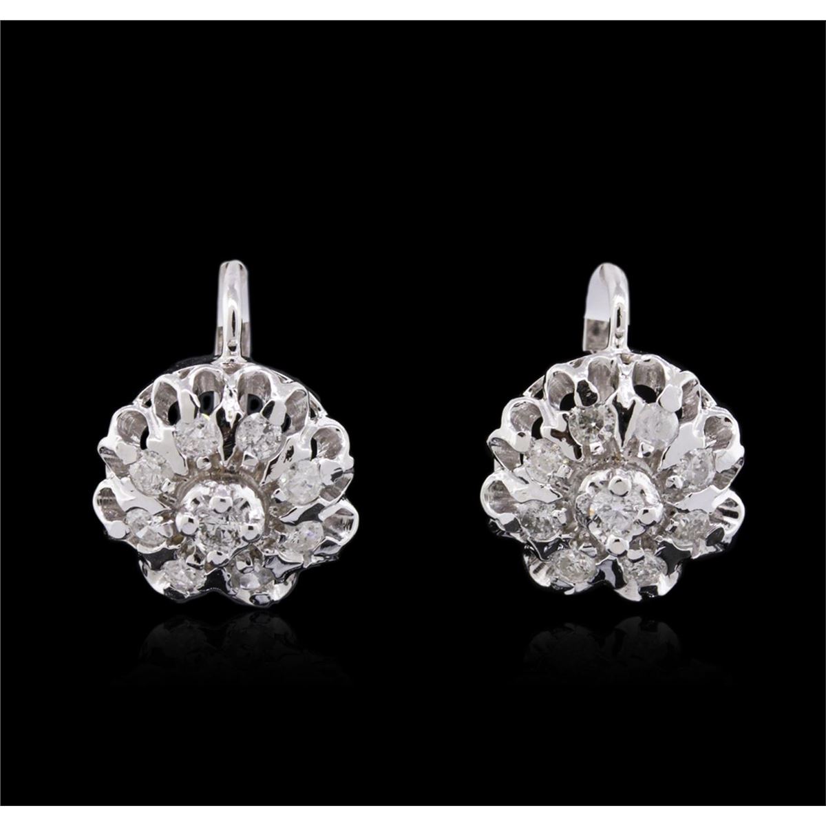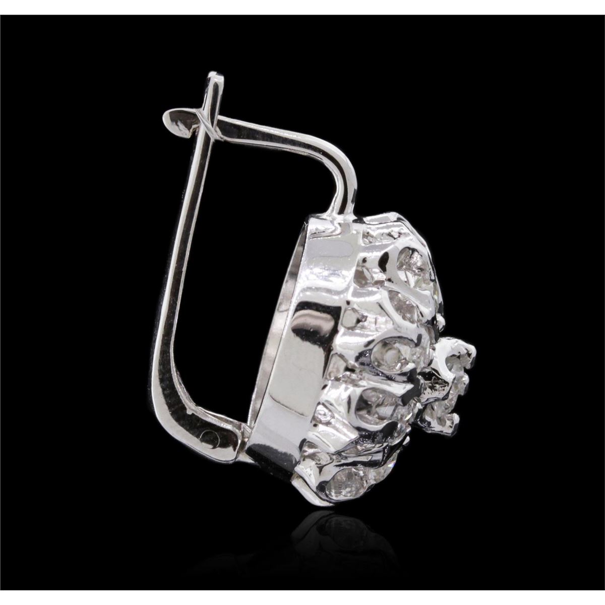 One pair electronically tested 14KT white gold ladies combination cast & assembled diamond earrings with hinged clip backs with a bright polish finish. Identified with markings of "14K". Condition is new. Containing: Eighteen prong set round brilliant cut diamonds, measuring 3.00 - 2.50 x 1.65mm (depth est.) approximate total weight of 18 Stones = 1.10ct. Clarity: I-1 to I-2. Color: H - I, Cut is Good. All diamonds are graded in the mounting, unless otherwise stated. Total Weight of Diamonds 1.10ct. Total Weight of Earrings 10.30 grams. GGL Appraised at $5,120.00.