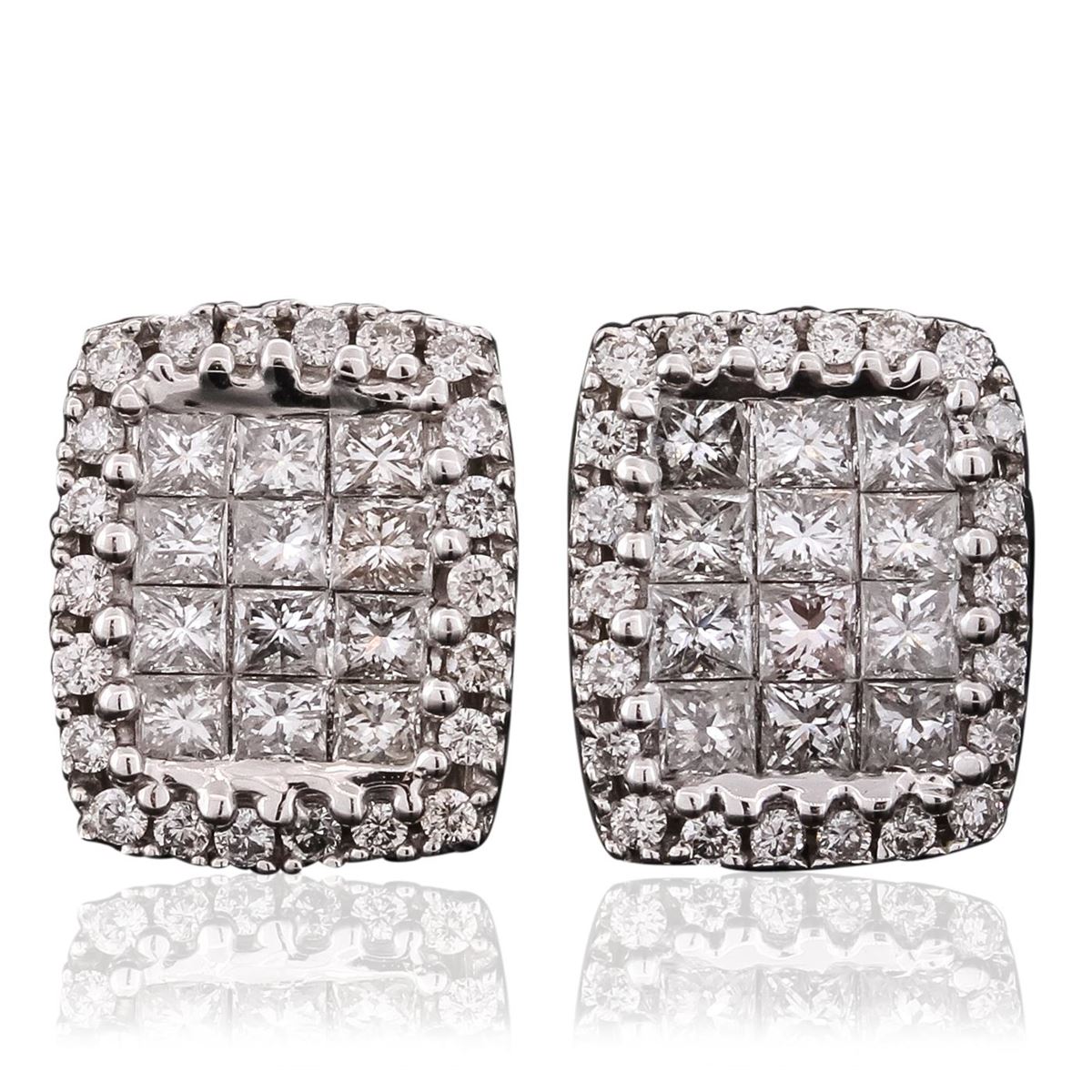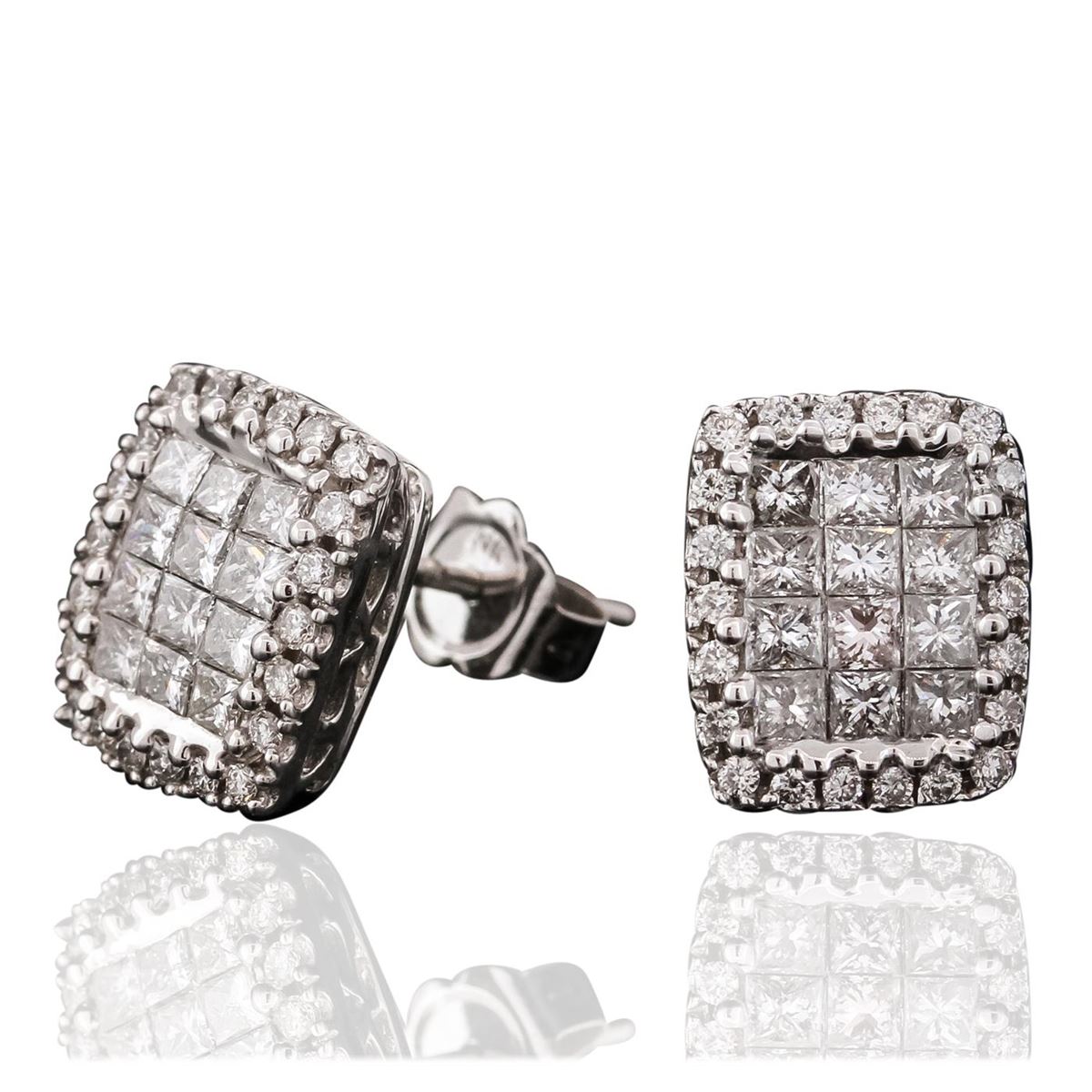 One pair of earrings featuring: 3.5 grams of 14KT white gold, diamonds with a total weight of 1.10ct.