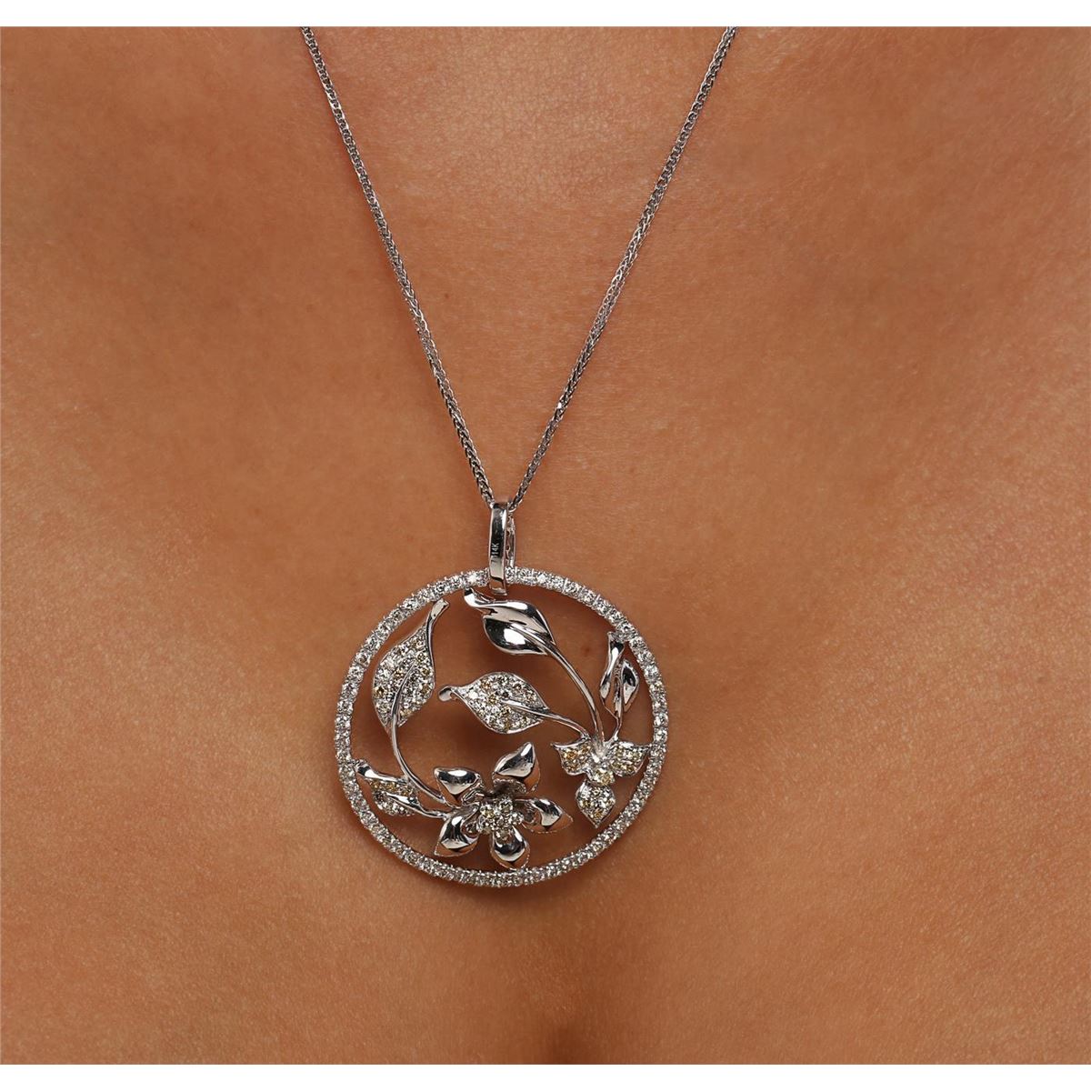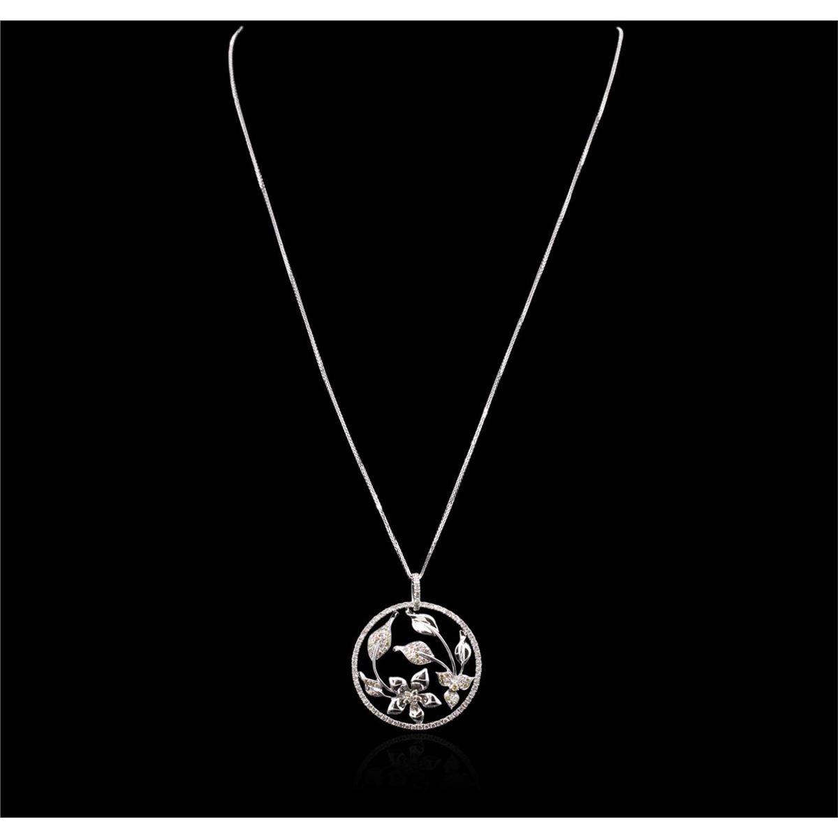 One pendant with chain featuring: 14KT white gold weighing 8.00 grams containing diamonds with a total weight of 1.10cts.