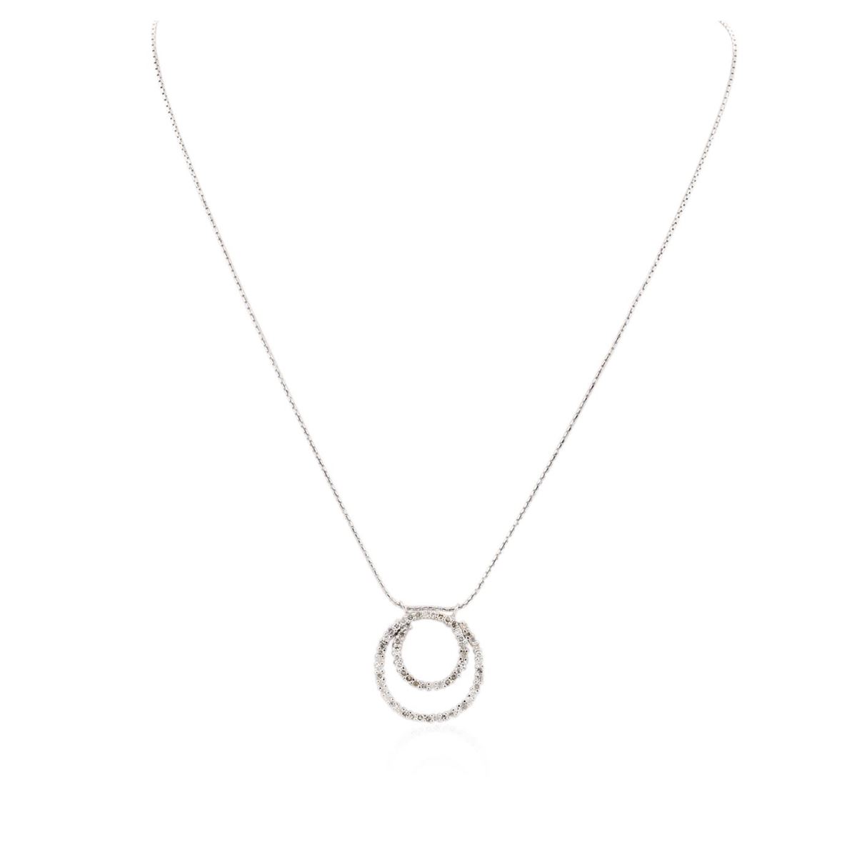 One pendant with chain featuring: 14KT white gold weighing 7.45 grams containing prong set round diamonds with a total weight of 1.12ct.