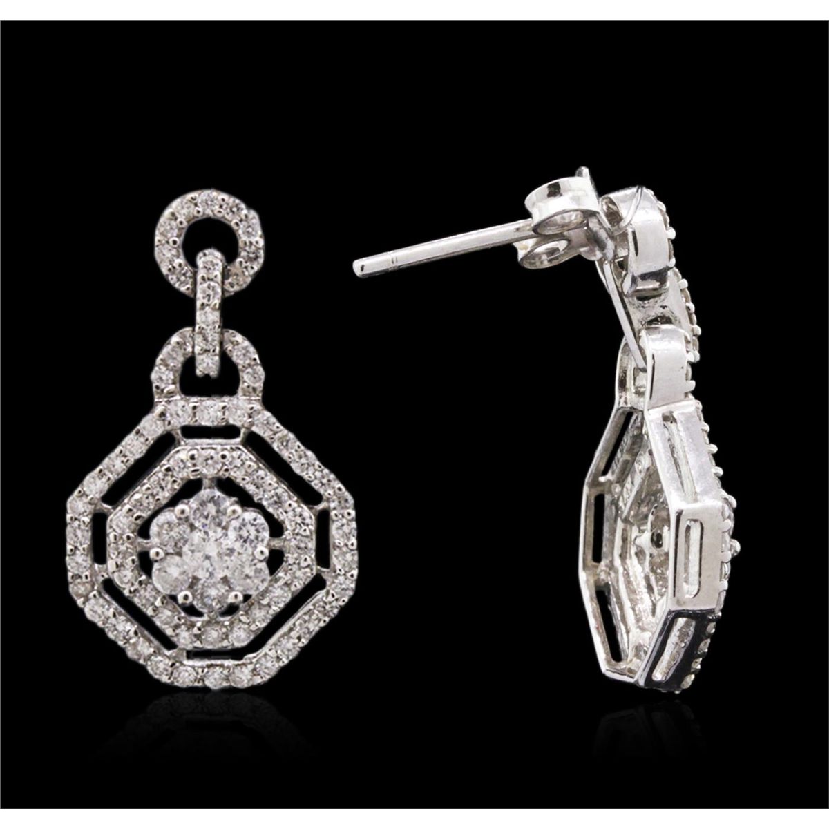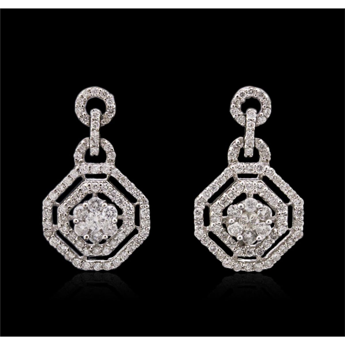 One pair of earrings featuring: 14KT white gold weighing 4.40 grams containing diamonds with a total weight of 1.12cts.