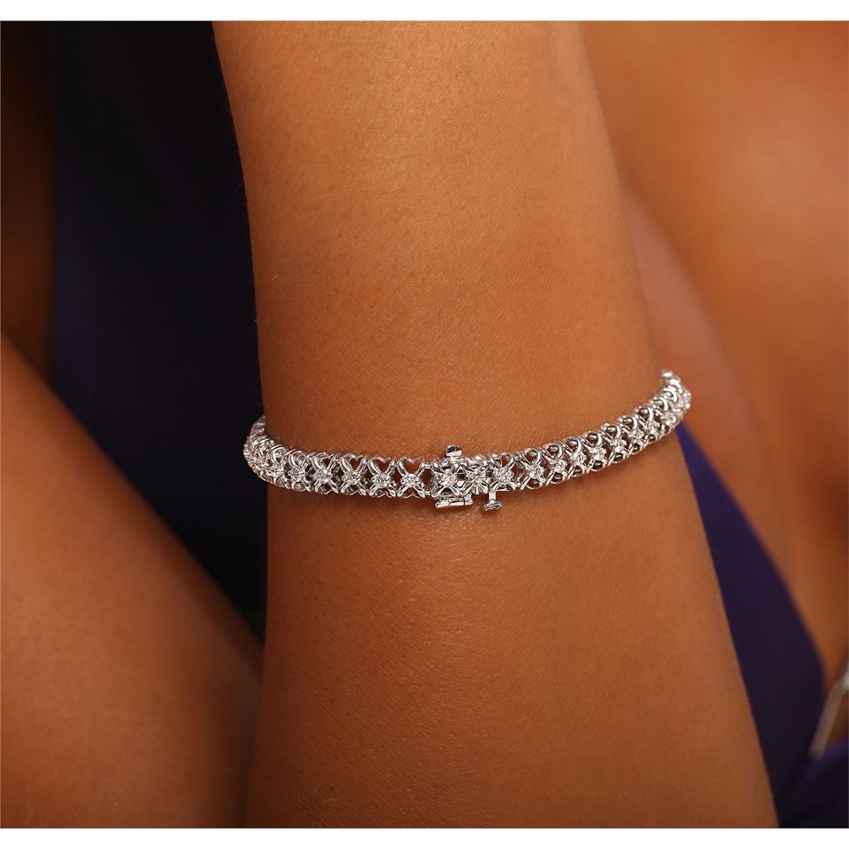 One electronically tested 14KT white gold ladies combination cast & assembled tennis bracelet with a hidden box clasp with a bright polish finish. Condition is new. Measurements: 6.75" in length. Containing: Forty-Five prong set round brilliant cut diamonds, measuring 1.90 - 1.90 x 1.14mm (depth est.) approximate total weight of 45 Stones = 1.13ct. Clarity: SI-1 to I-1. Color: G - I, Cut is Good. All diamonds are graded in the mounting, unless otherwise stated. Total Weight of Diamonds 1.13ct. Total Weight of Bracelet 11.40 grams. GGL Appraised at $6,730.00.