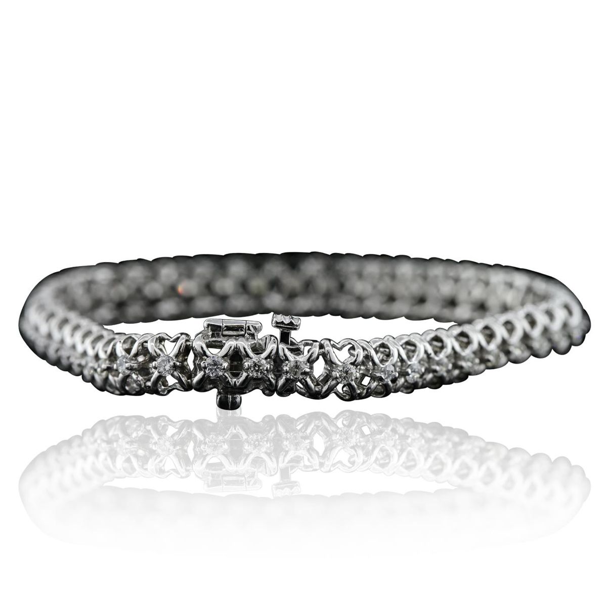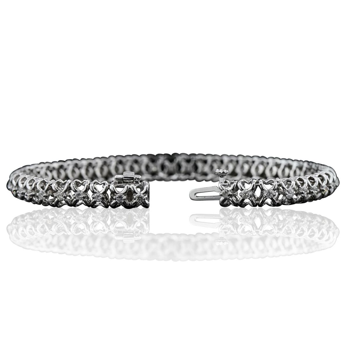 One electronically tested 14KT white gold ladies combination cast & assembled tennis bracelet with a hidden box clasp with a bright polish finish. Condition is new. Measurements: 6.75" in length. Containing: Forty-Five prong set round brilliant cut diamonds, measuring 1.90 - 1.90 x 1.14mm (depth est.) approximate total weight of 45 Stones = 1.13ct. Clarity: SI-1 to I-1. Color: G - I, Cut is Good. All diamonds are graded in the mounting, unless otherwise stated. Total Weight of Diamonds 1.13ct. Total Weight of Bracelet 11.40 grams. GGL Appraised at $6,730.00.