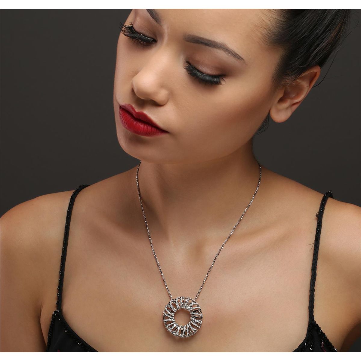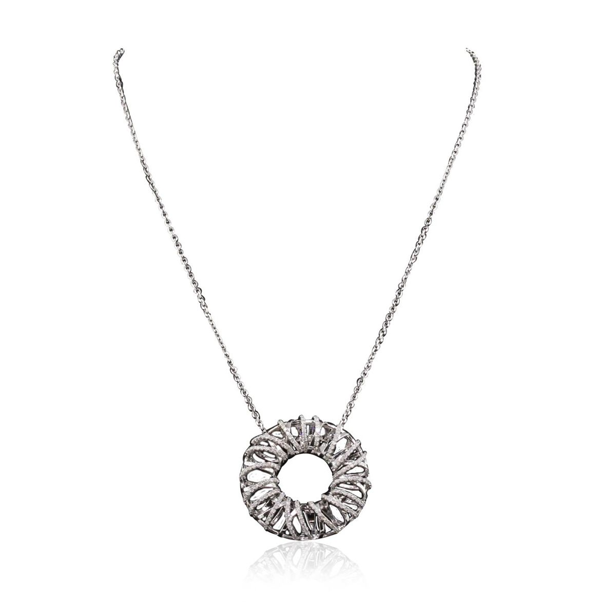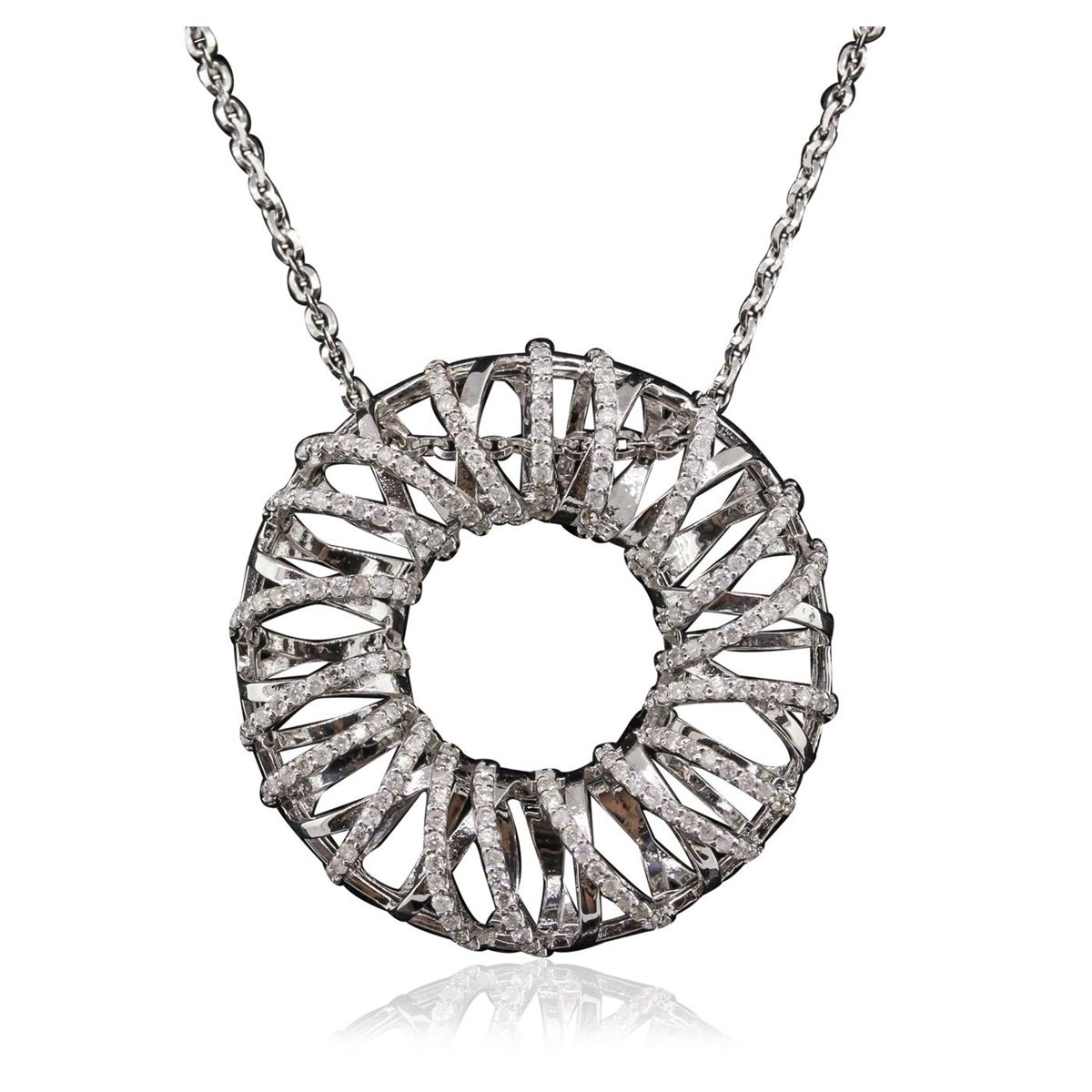 One electronically tested 14KT white gold Ladies combination cast & assembled pendant & chain 17.0" long, medium cable link with a lobster claw clasp with a bright polish finish. Condition is new. Identified with markings of "14K". Containing: Two Hundred Sixteen prong set round brilliant cut diamonds, measuring 1.10 - 1.10 x 0.66mm (depth est.) approximate. Total Weight of 216 Stones = 1.04ct. Clarity: I-1 to I-3. Color: H - I, Cut is Good. Total Weight of Diamonds 1.04ct. Total Weight of Pendant & Chain 14.60 grams. GGL Appraised at $7,160.00.