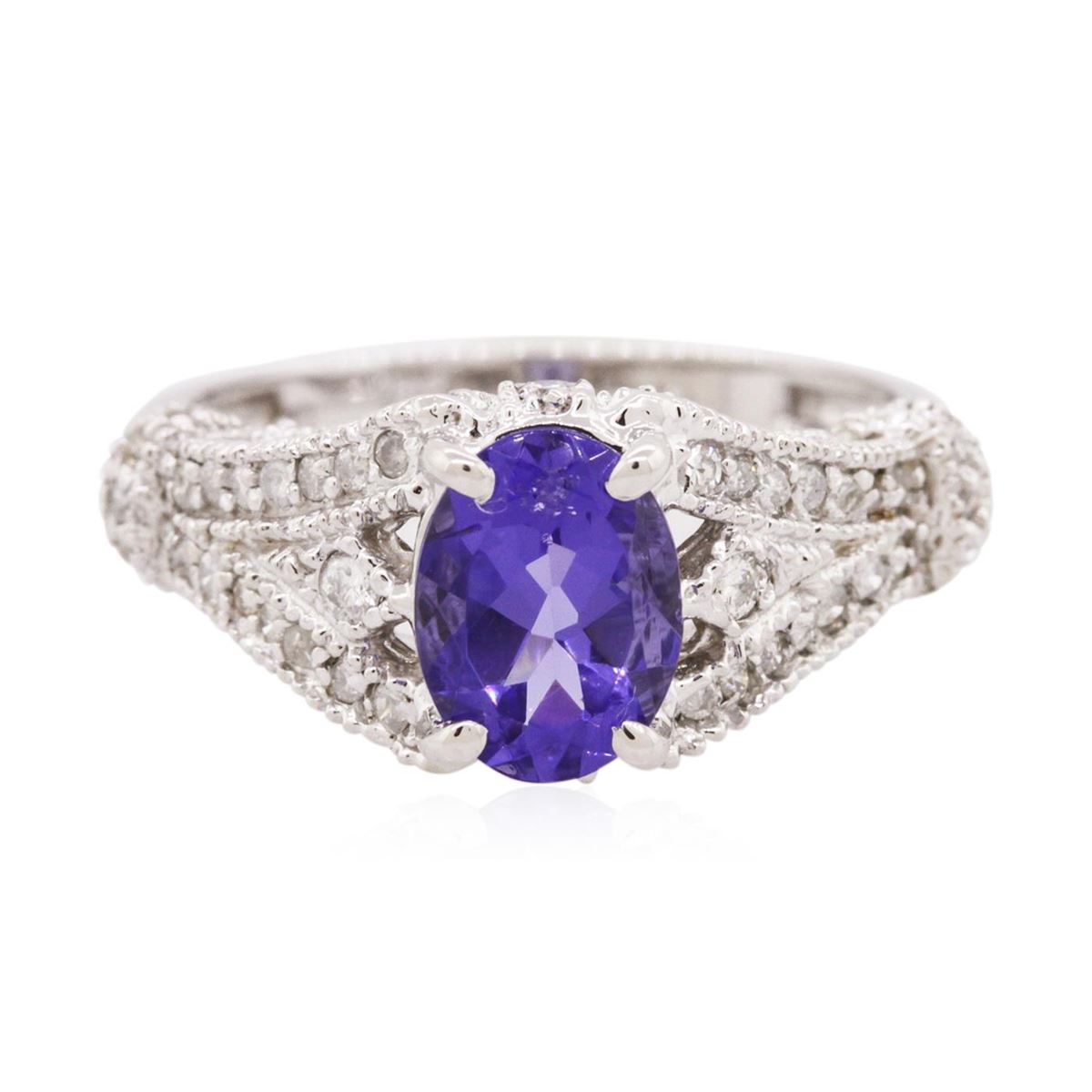 One ring featuring: 14KT white gold weighing 3.85 grams containing one tanzanite center stone with a total weight of 1.16ct and round diamonds with a total weight of 0.28cts.