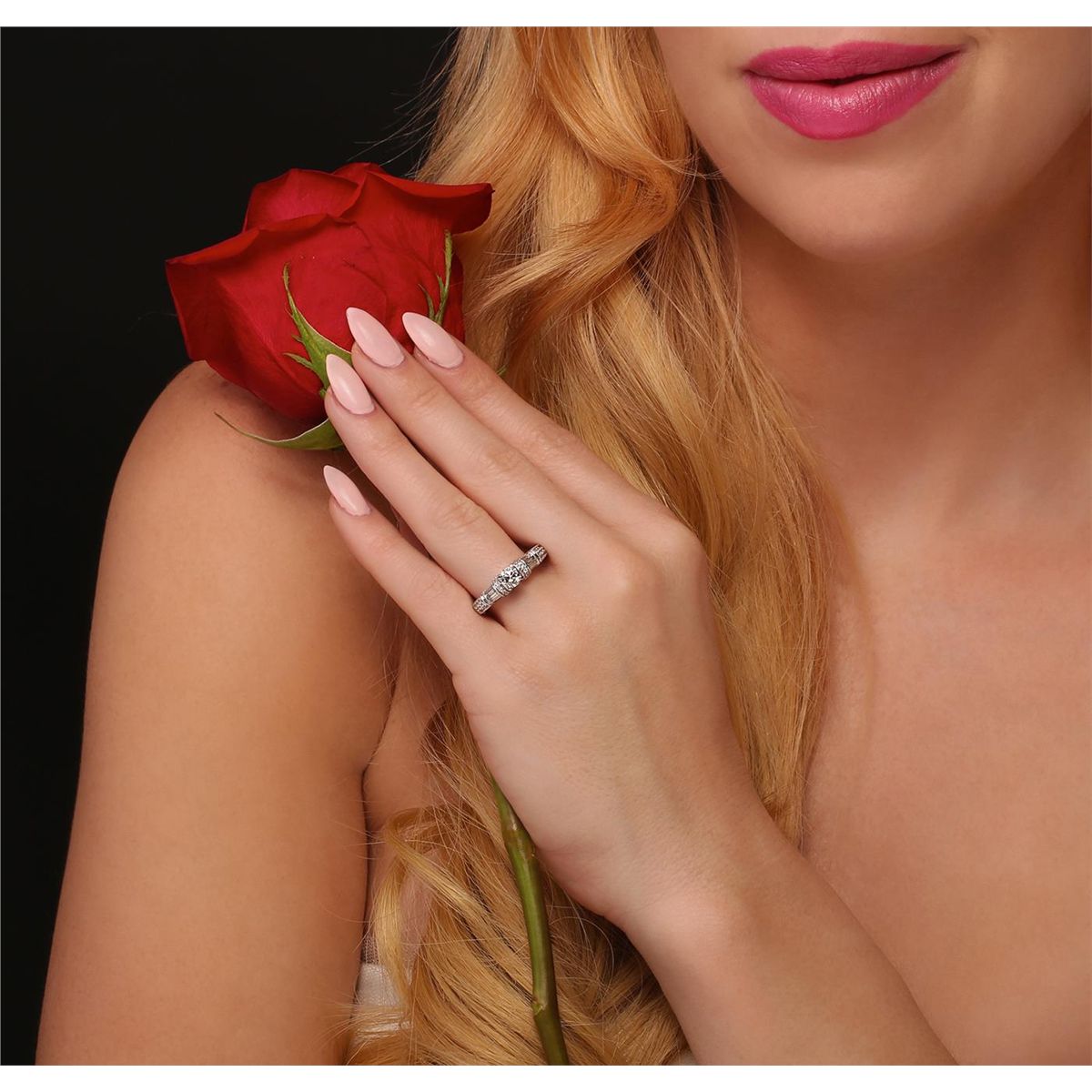 One electronically tested 14KT white gold ladies combination cast & assembled engagement ring with a bright polish finish. Identified with markings of "14K". Condition is new. Containing: One prong set round brilliant cut diamond, measuring 5.00 - 5.00 x 3.00mm (depth est.) approximate weight of 0.46ct. Clarity: VS-2. Color: J, Cut is Very Good. Ten channel set baguette cut diamonds, measuring 3.00 x 1.50 x 1.28mm (depth est.) approximate total weight of 10 Stones = 0.53ct. Clarity: VS-2. Color: J, Cut is Good. Twenty-Four prong set round brilliant cut diamonds, measuring 1.50 - 1.00 x 0.75mm (depth est.) approximate total weight of 24 Stones = 0.17ct. Clarity: SI-2 to I-2. Color: J, Cut is Good. All diamonds are graded in the mounting, unless otherwise stated. Total Weight of Diamonds 1.16ct. Total Weight of Ring 4.90 grams. GGL Appraised at $7,090.00.
