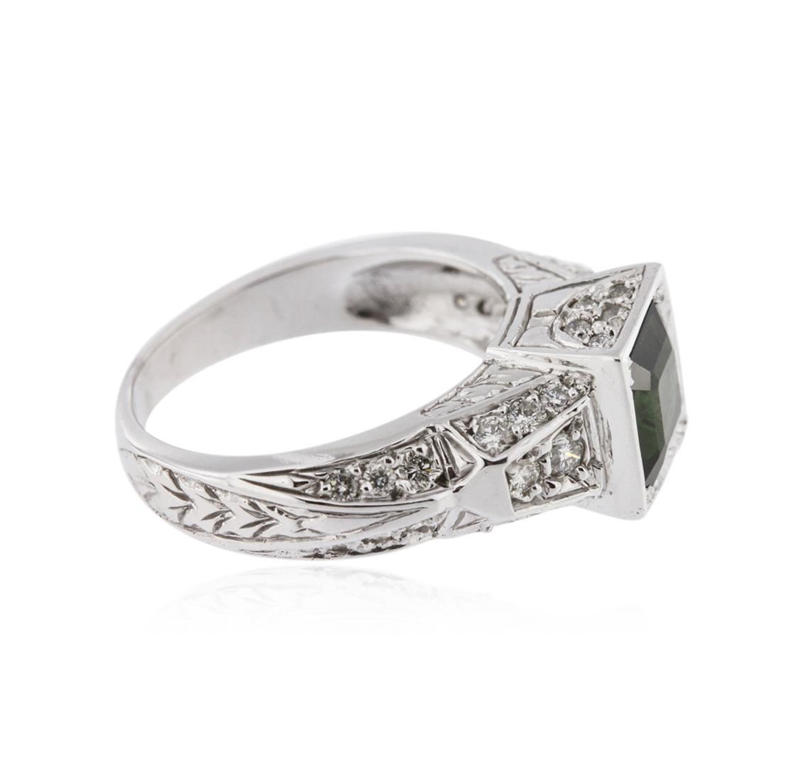 One ring featuring: 14KT white gold weighing 6.03 grams containing one green tourmaline center stone with a total weight of 1.17ct and pave set round diamonds with a total weight of 0.60ct.