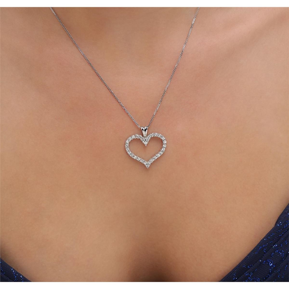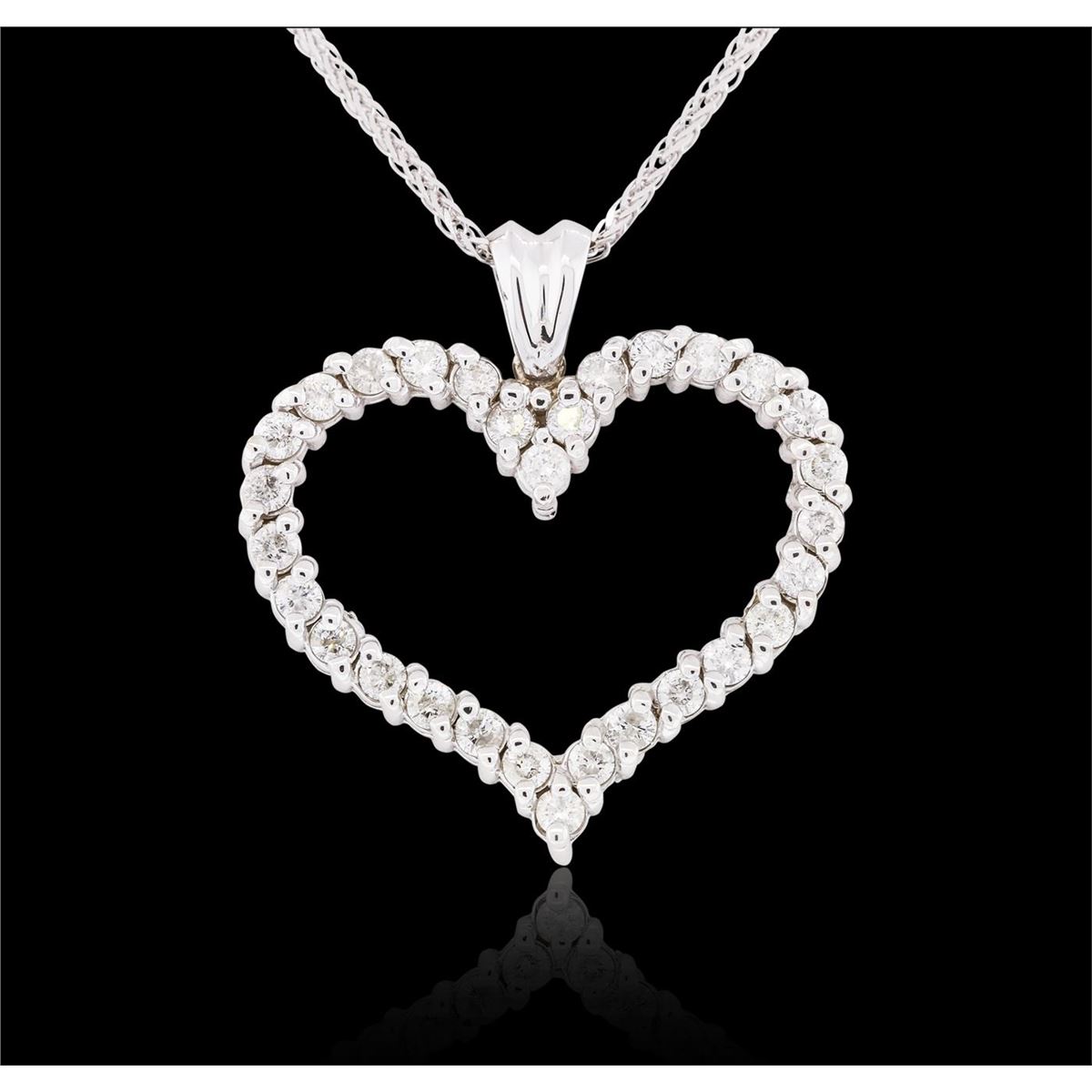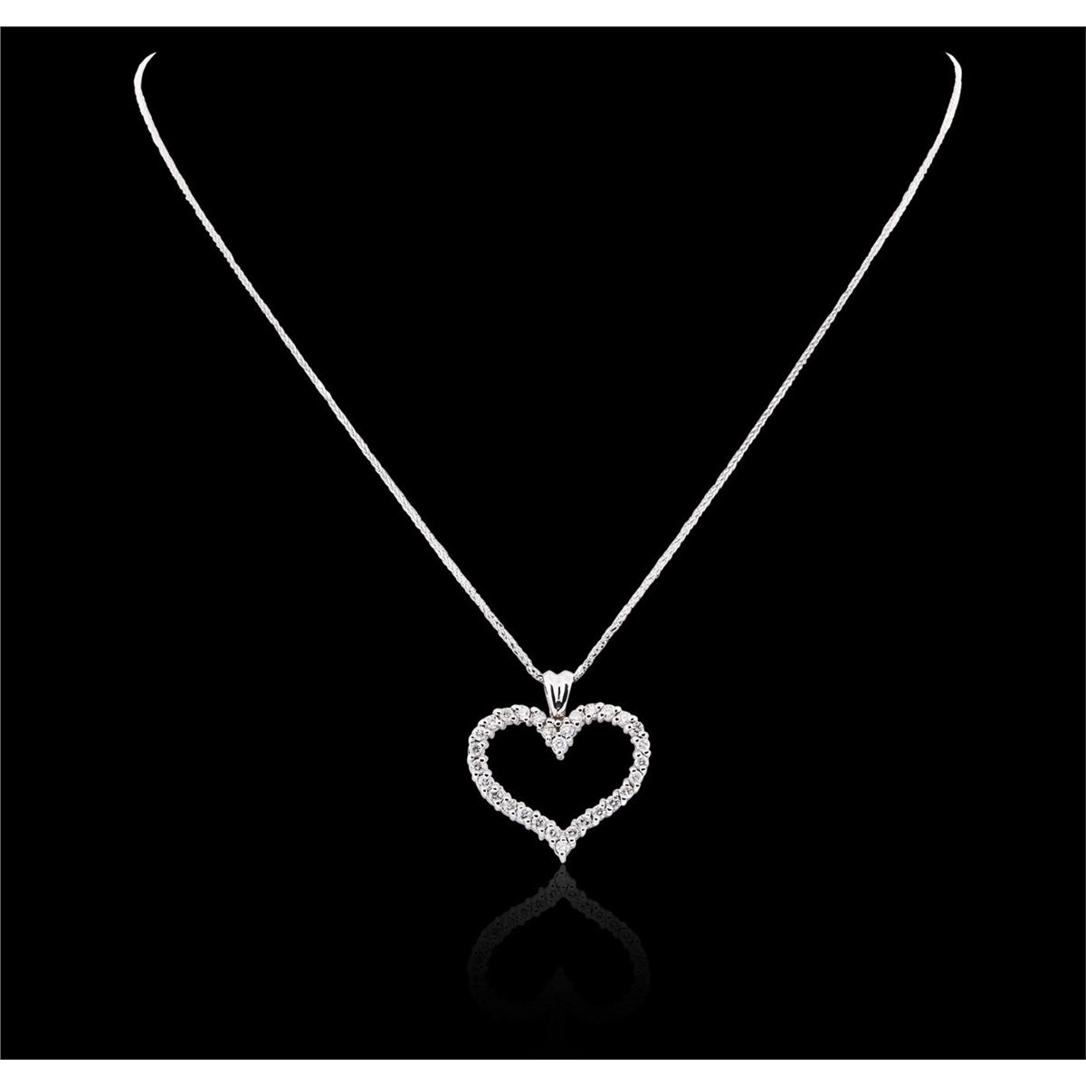 One electronically tested 14KT white gold ladies combination cast & assembled diamond heart pendant & chain 18.0" long, braided design wheat link with a lobster claw clasp with a bright polish finish. Condition is new. Containing: Thirty prong set round brilliant cut diamonds, measuring 2.20 - 2.20 x 1.32mm (depth est.) exact total weight 30 Stones = 1.17ct. Clarity: I-1 to I-2. Color: H - I, Cut is Good. All diamonds are graded in the mounting, unless otherwise stated. Total Weight of Diamonds 1.17ct. Total Weight of Pendant & Chain 7.10 grams. GGL Appraised at $4,165.00.