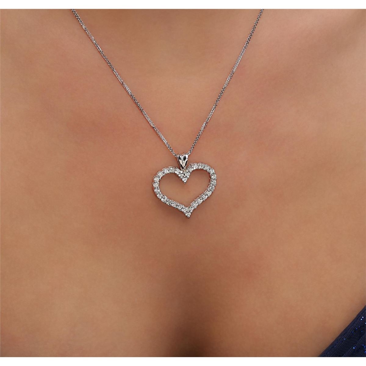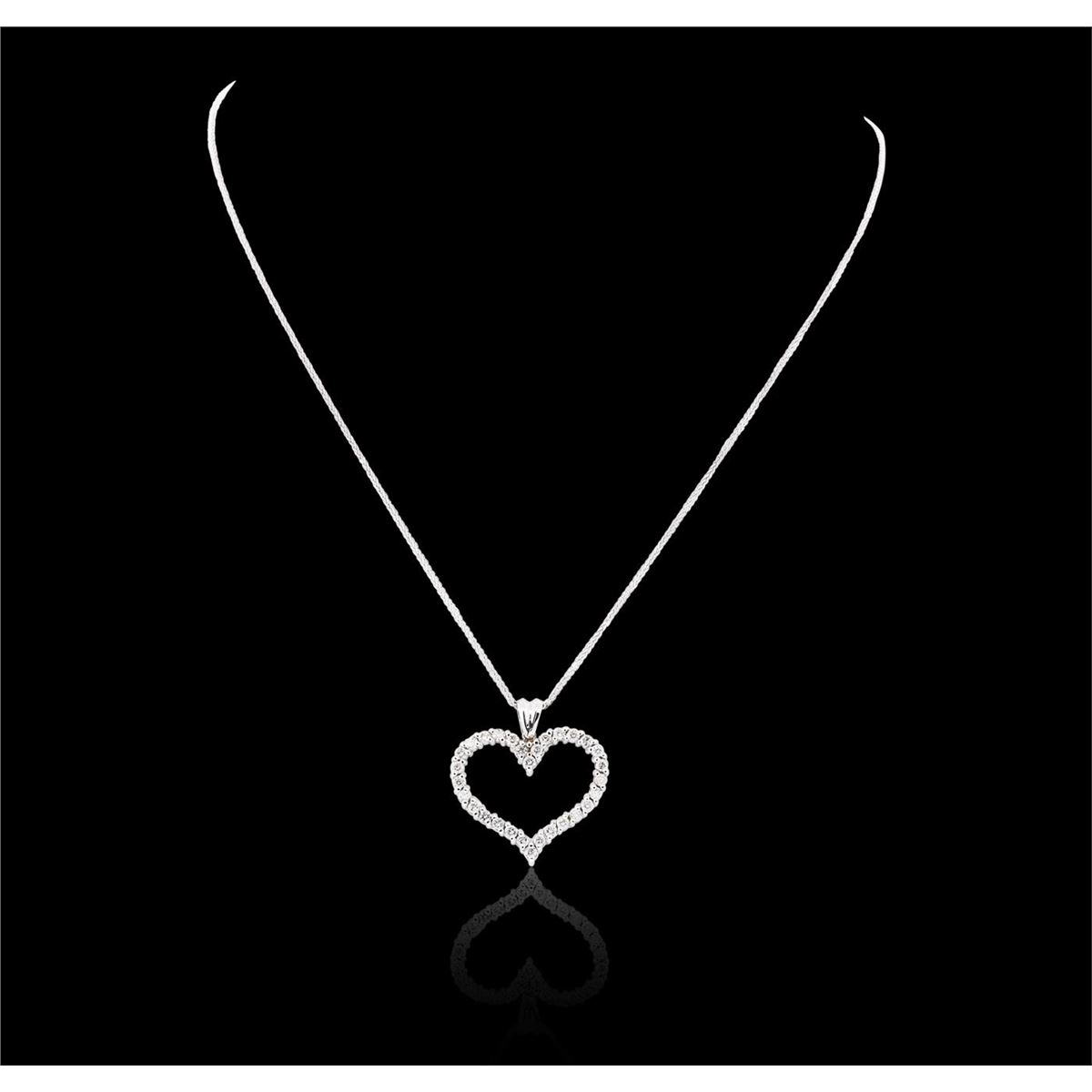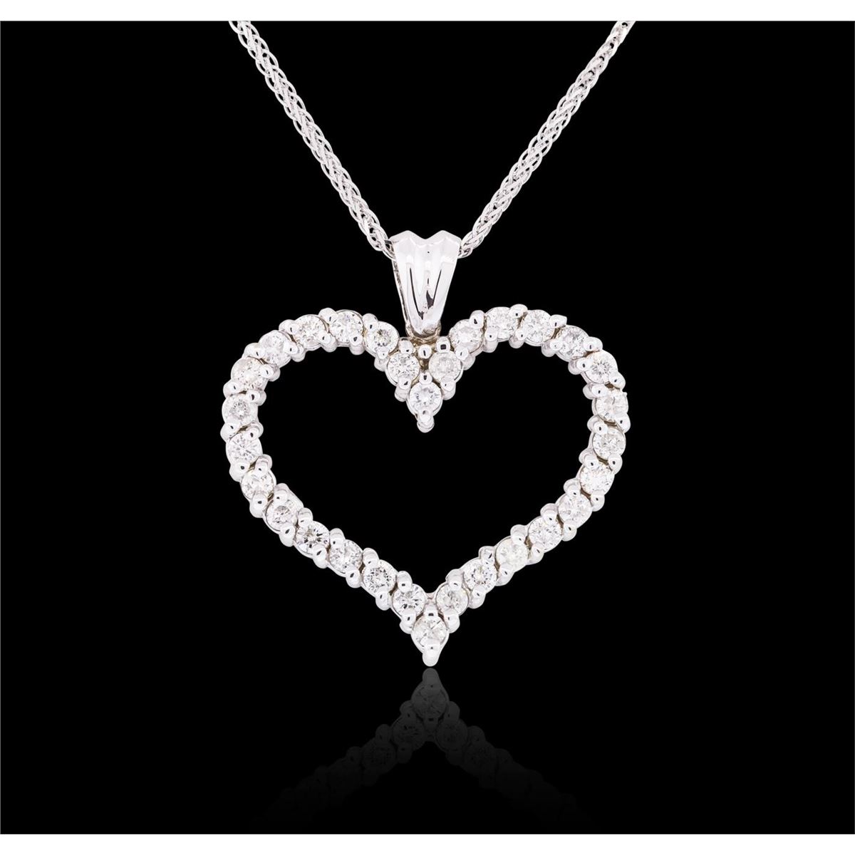One electronically tested 14KT white gold ladies combination cast & assembled diamond heart pendant & chain 18.0" long, braided design wheat link with a lobster claw clasp with a bright polish finish. Condition is new. Containing: Thirty prong set round brilliant cut diamonds, measuring 2.20 - 2.20 x 1.32mm (depth est.) exact total weight 30 Stones = 1.17ct. Clarity: SI-1 to I-1. Color: I - J, Cut is Good. All diamonds are graded in the mounting, unless otherwise stated. Total Weight of Diamonds 1.17ct. Total Weight of Pendant & Chain 6.90 grams. GGL Appraised at $4,505.00.