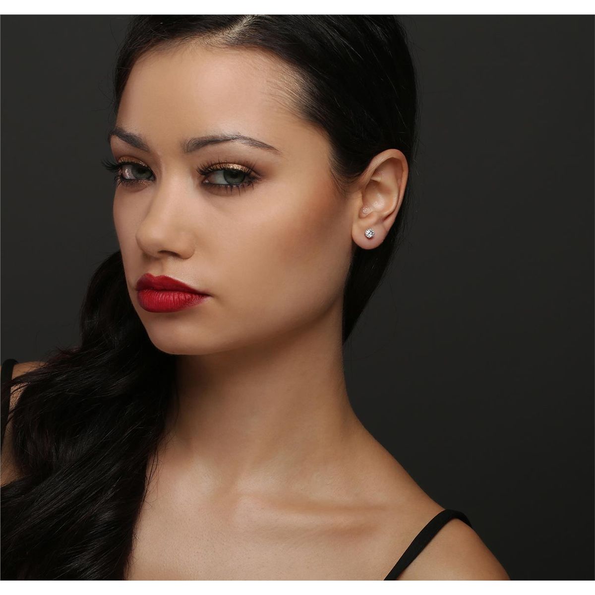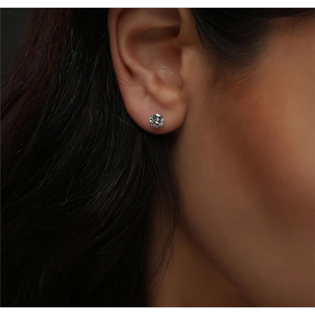 One pair electronically tested 14KT white gold cast & assembled diamond solitaire earrings with standard backs. Bright polish finish. Identified with markings of "14K". Condition is new, good workmanship. Containing: One prong set round brilliant cut diamond, measuring 5.20 - 5.15 x 3.10mm (depth est.) approximate weight of 0.60ct with a faint blue fluorescence. Graded in the setting. Clarity: I-1. Color: H. Depth 59.9%. Table 65.6%. One prong set round brilliant cut diamond, measuring 5.20 - 5.15 x 2.90mm (depth est.) approximate weight of 0.57ct. Graded in the setting. Clarity: I-1. Color: J. Depth 56.0%. Table 71.4%. Total Weight of Diamonds 1.17ct. Total Weight of Earrings 0.91 grams. AIG Appraised at $5,745.00.