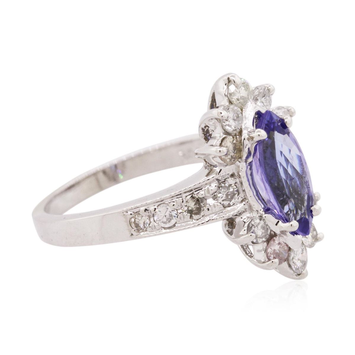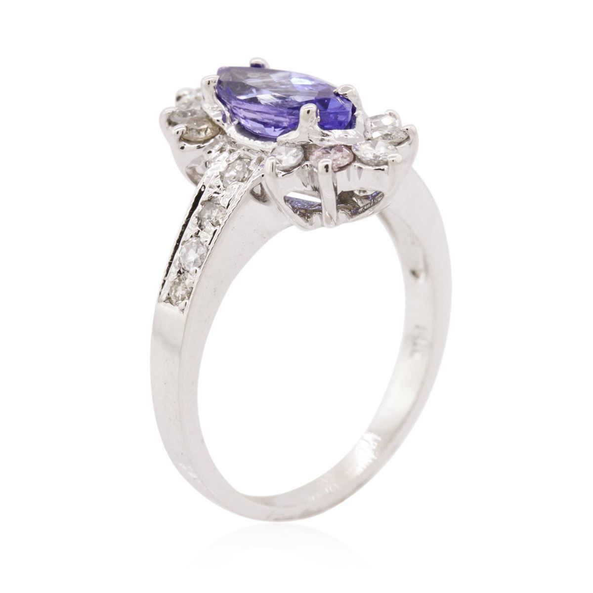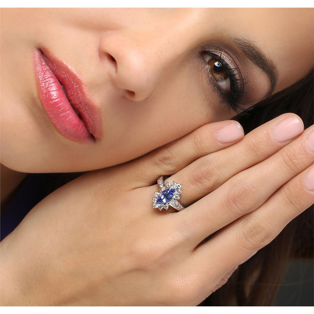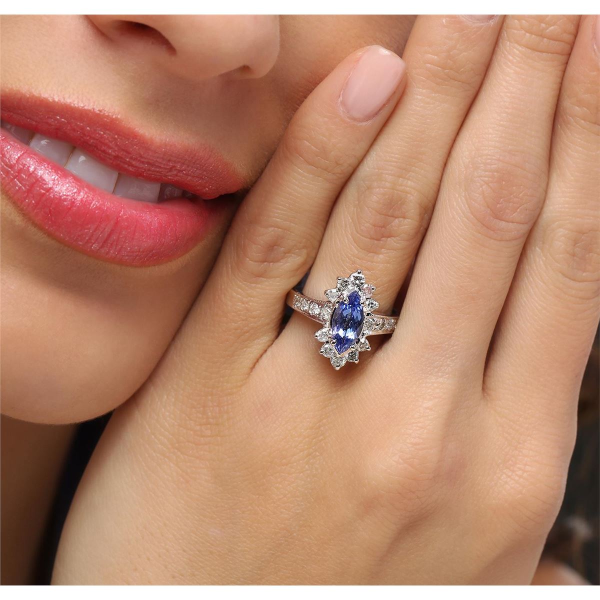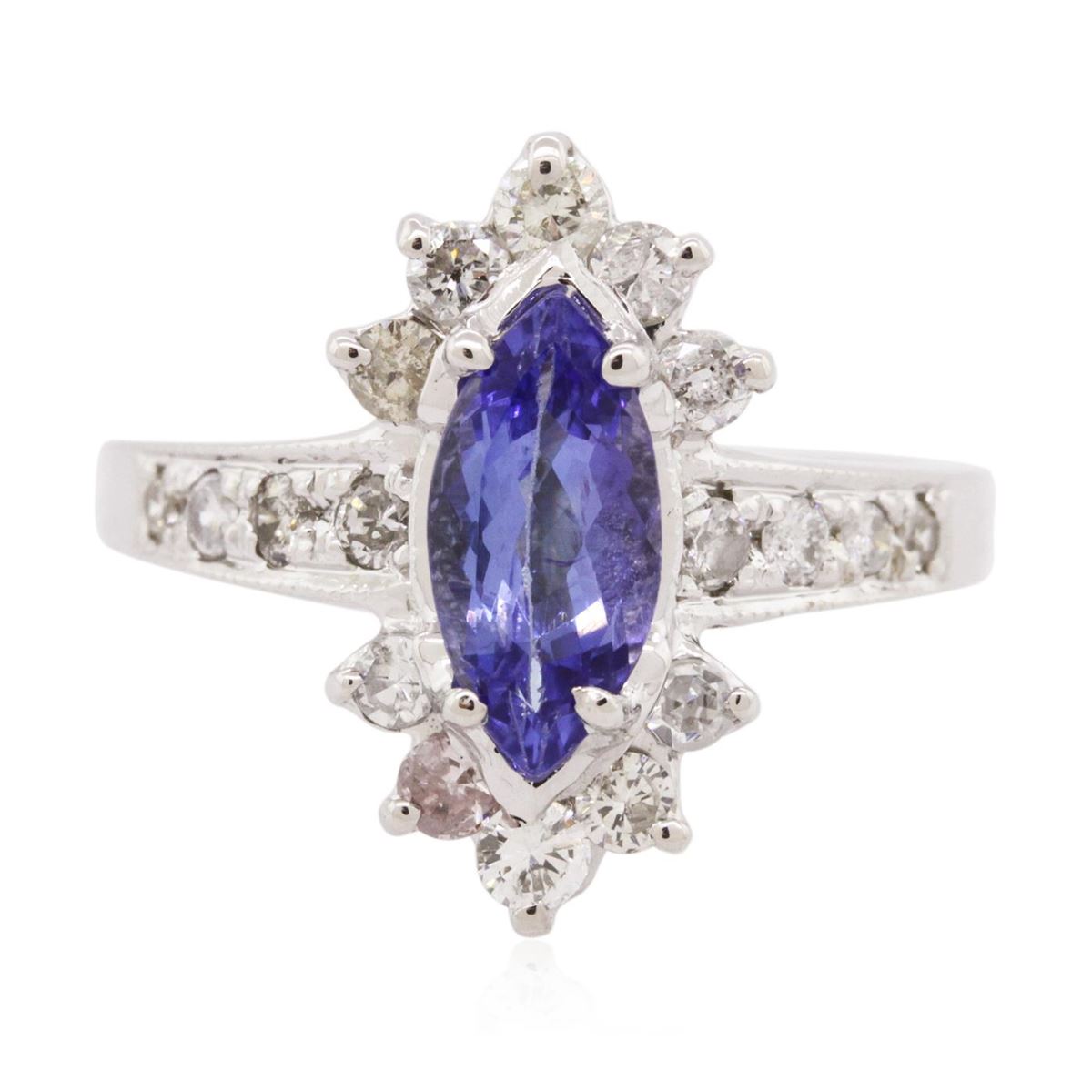 One ring featuring: 14KT white gold weighing 5.30 grams containing one tanzanite center stone with a total weight of 1.18ct and round diamonds with a total weight of 0.65cts.