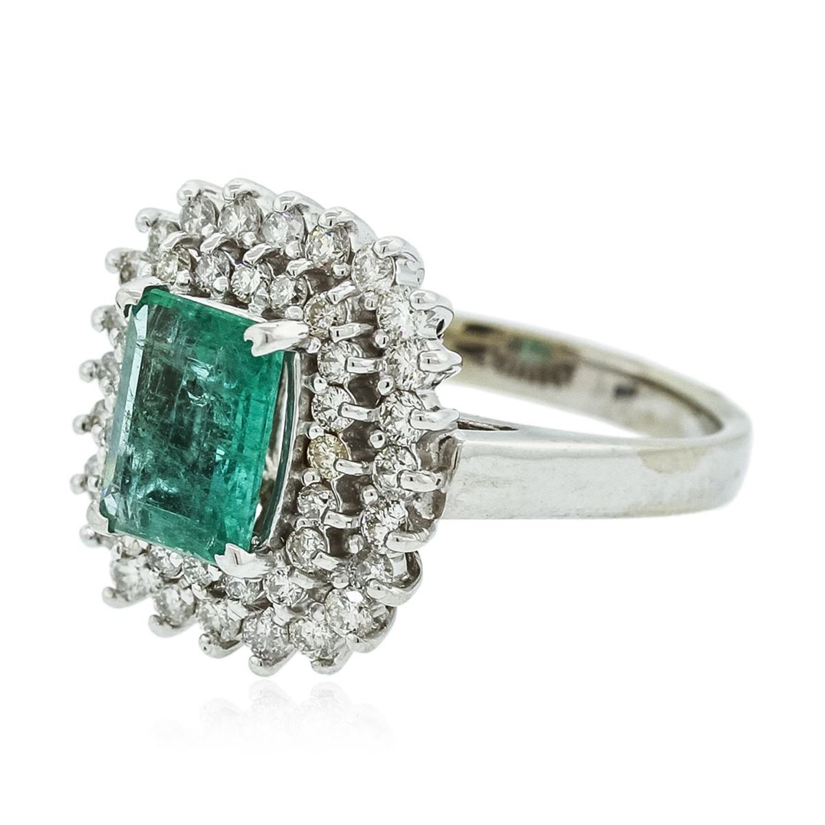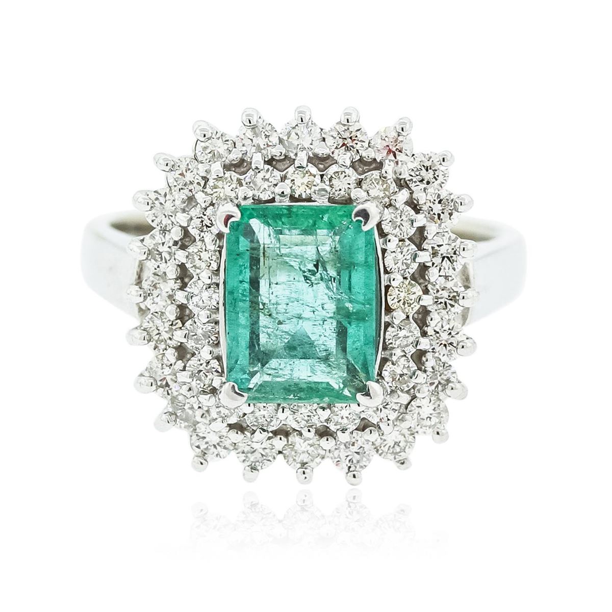 One electronically tested 14KT White Gold Ladies combination cast & assembled ring with a bright polish finish. Condition is new. Identified with markings of "14K". Containing: One prong set emerald standard step cut natural emerald, measuring 8.50 x 6.00 x 3.20mm, approximate weight of 1.20ct., clarity is moderately included, type III, medium light, very slightly grayish, very slightly bluish green color, (GIA vslbG 4/3), cut is good. Colored gemstones are presumed to have been subjected to commonly used and possible undetectable color/clarity enhancement processes. Forty-Three prong set round brilliant cut diamonds, measuring 1.80 - 1.40 x 0.96mm (depth est.) approximate total weight of 43 Stones = 0.64ct. Clarity of SI-2 to I-1, Color of J - K, Cut is Good. Total Weight of Colored Stones 1.20ct. Total Weight of Diamonds 0.64ct. Total Weight of Ring 7.30gm. GGL Appraised at $6,890.00.