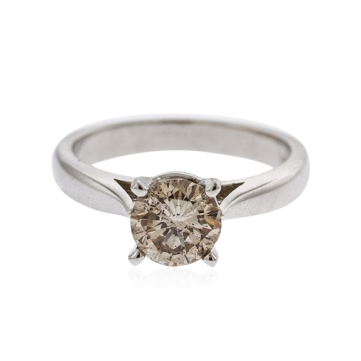 One electronically tested 14KT white gold ladies cast diamond solitaire ring with a bright polish finish. Identified with markings of "14K". Condition is new. Containing: One prong set round brilliant cut diamond, measuring 6.90 - 6.90 x 4.14mm (depth est.) approximate weight of 1.20ct. Clarity: I-1, Cut is Good. All diamonds are graded in the mounting, unless otherwise stated. Total Weight of Diamonds 1.20ct. Total Weight of Solitaire Ring 3.80 grams. GGL Appraised at $3,340.00.