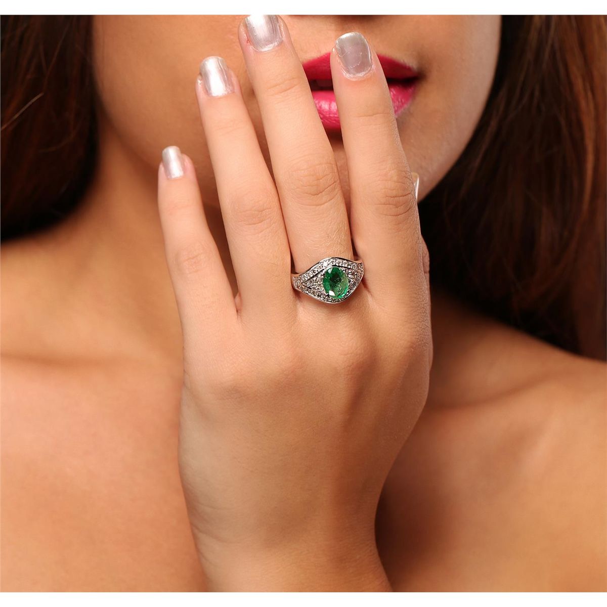 One electronically tested 14KT white gold Ladies combination cast & assembled fashion ring with a high polish finish. Condition is new. Identified with markings of "14K". Containing: One prong set oval modified mixed cut natural emerald, measuring 9.10 x 6.53 x 3.60mm, approximate weight of 1.20ct., clarity is heavily included, type III, medium, very slightly grayish, very slightly bluish green color, (GIA vslbG 5/3), cut is good. Colored gemstones are presumed to have been subjected to commonly used and possible undetectable color/clarity enhancement processes. Thirty-Four prong set round brilliant cut diamonds, measuring 1.50 - 1.50 x 0.90mm (depth est.) approximate total weight of 34 Stones = 0.42ct. Clarity of SI-1 to I-1, Color of J - K, Cut is Good. Total Weight of Colored Stones 1.20ct. Total Weight of Diamonds 0.42ct. Total Weight of Ring 7.10 grams. GGL Appraised at $5,975.00.