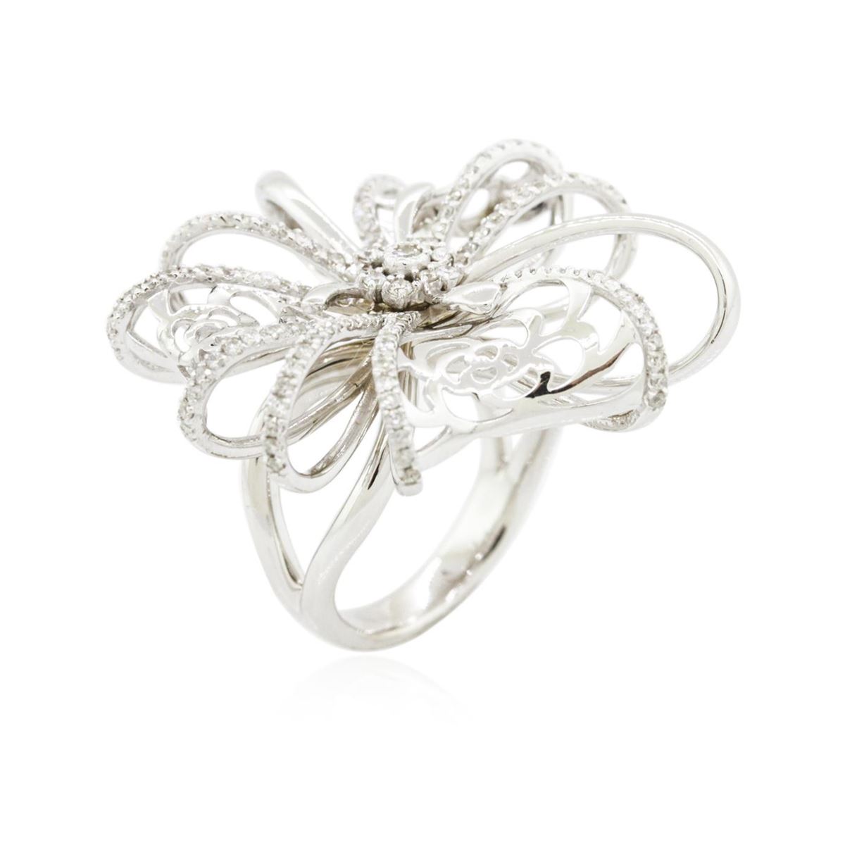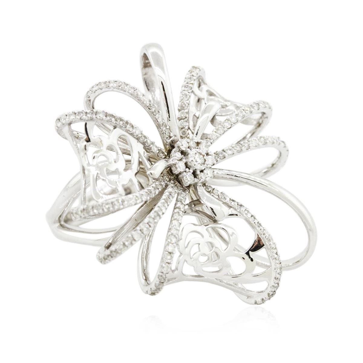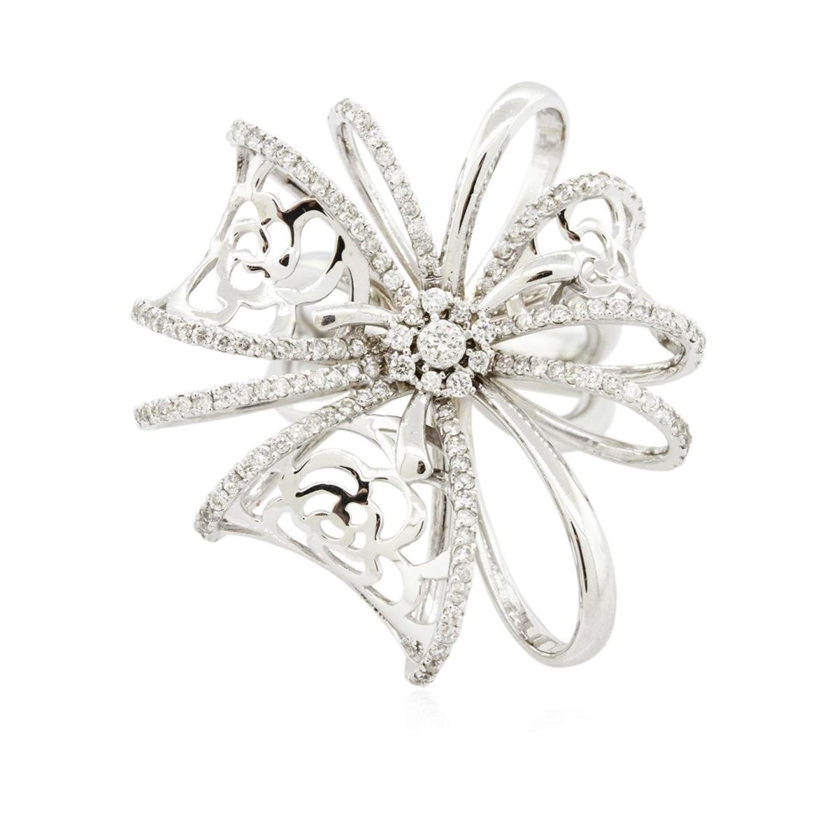 One electronically tested 14KT white gold ladies cast diamond ring with a bright polish finish. Condition is new. Containing: One Hundred Fifty-Three prong set round brilliant cut diamonds, measuring 1.50 - 1.10 x 0.78mm (depth est.) approximate total weight of 153 Stones = 1.22ct. Clarity: SI-2 to I-1. Color: I - J, Cut is Good. All diamonds are graded in the mounting, unless otherwise stated. Total Weight of Diamonds 1.22ct. Total Weight of Ring 12.80 grams. GGL Appraised at $5,875.00.
