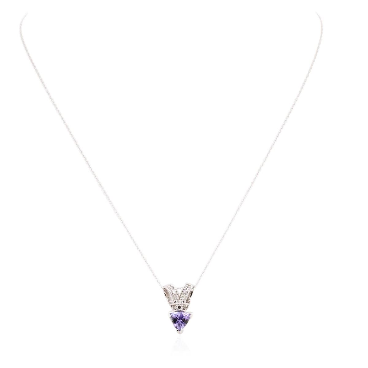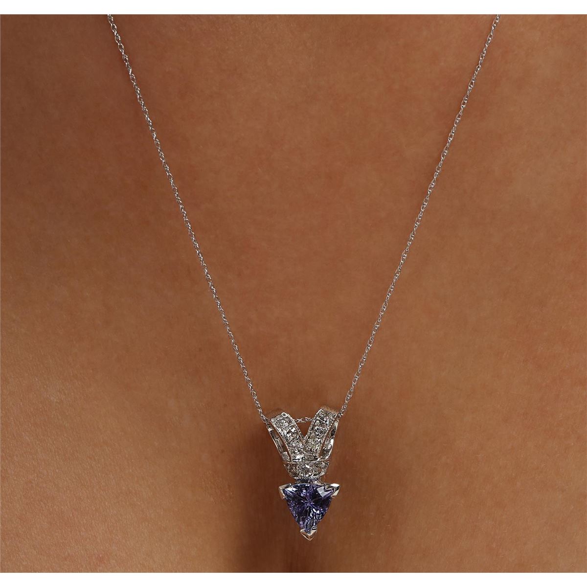 One pendant with chain featuring: 14KT white gold weighing 2.85 grams containing one tanzanite with a total weight of 1.23ct and round diamonds with a total weight of 0.23cts.