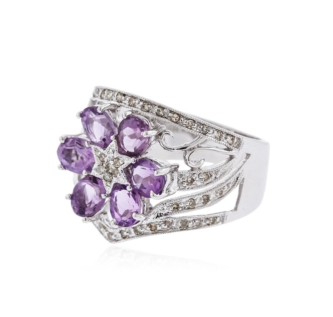 One ring featuring: 14KT white gold weighing 6.87 grams containing amethyst weighing a total of 1.25ct and diamonds weighing a total of 0.30ct.