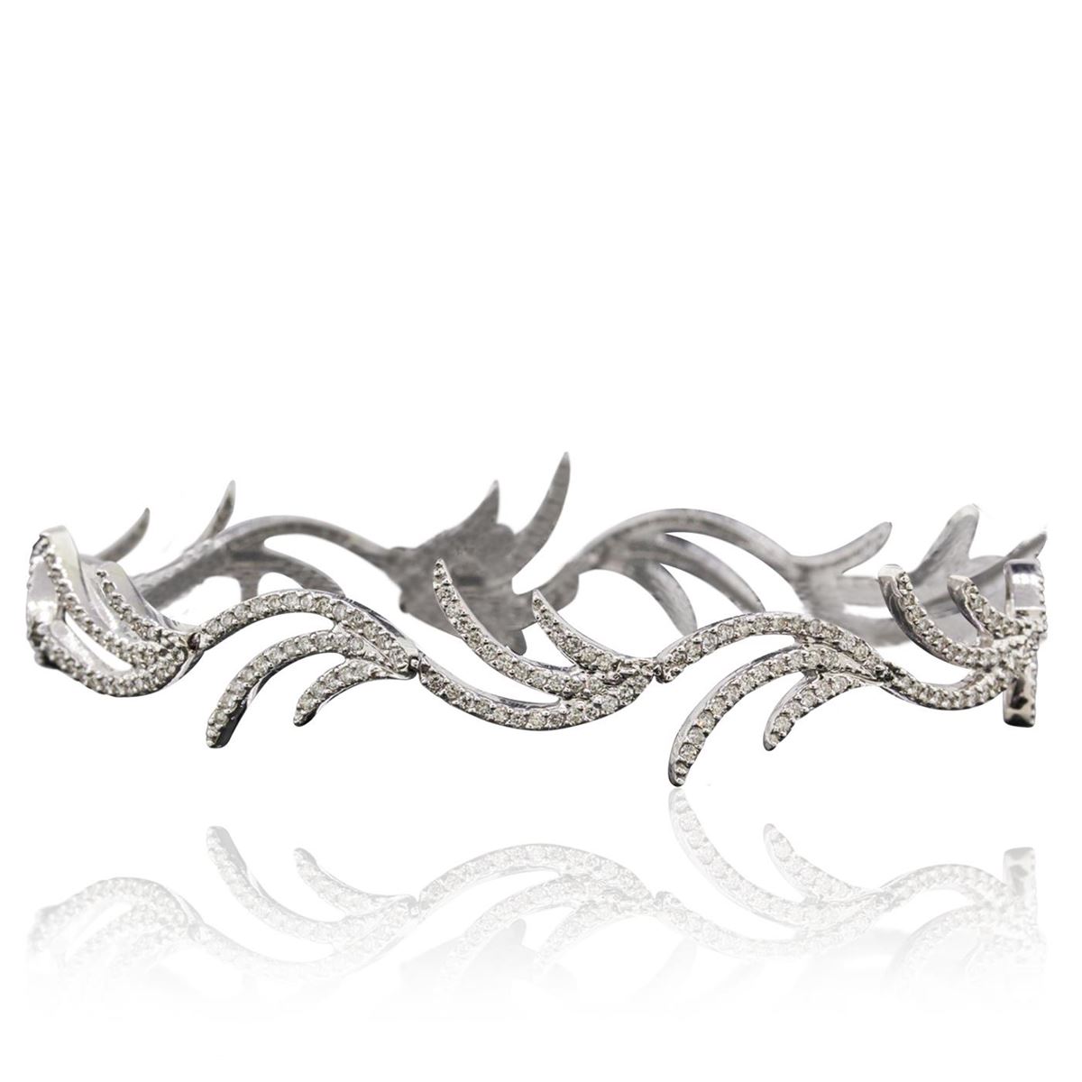 One electronically tested 14KT white gold ladies combination cast & assembled diamond bracelet with a foldover clasp with a bright polish finish. Measurements: 7.25" in length. Identified with markings of "14K". Condition is new. Containing: Three Hundred Forty-Eight prong set round brilliant cut diamonds, measuring 1.00 - 1.00 x 0.60mm (depth est.) approximate total weight of 348 Stones = 1.25ct. . Clarity: I-1 to I-2. Color: I - J, Cut is Good. All diamonds are graded in the mounting, unless otherwise stated.. Total Weight of Diamonds 1.25ct.. Total Weight of Bracelet 14.20 grams. GGL Appraised at $9,890.00.