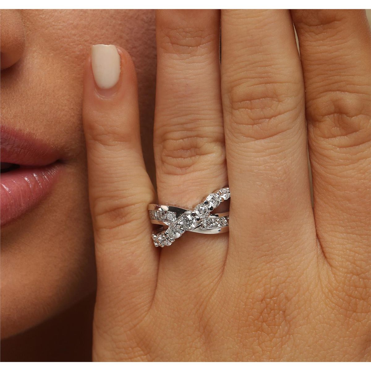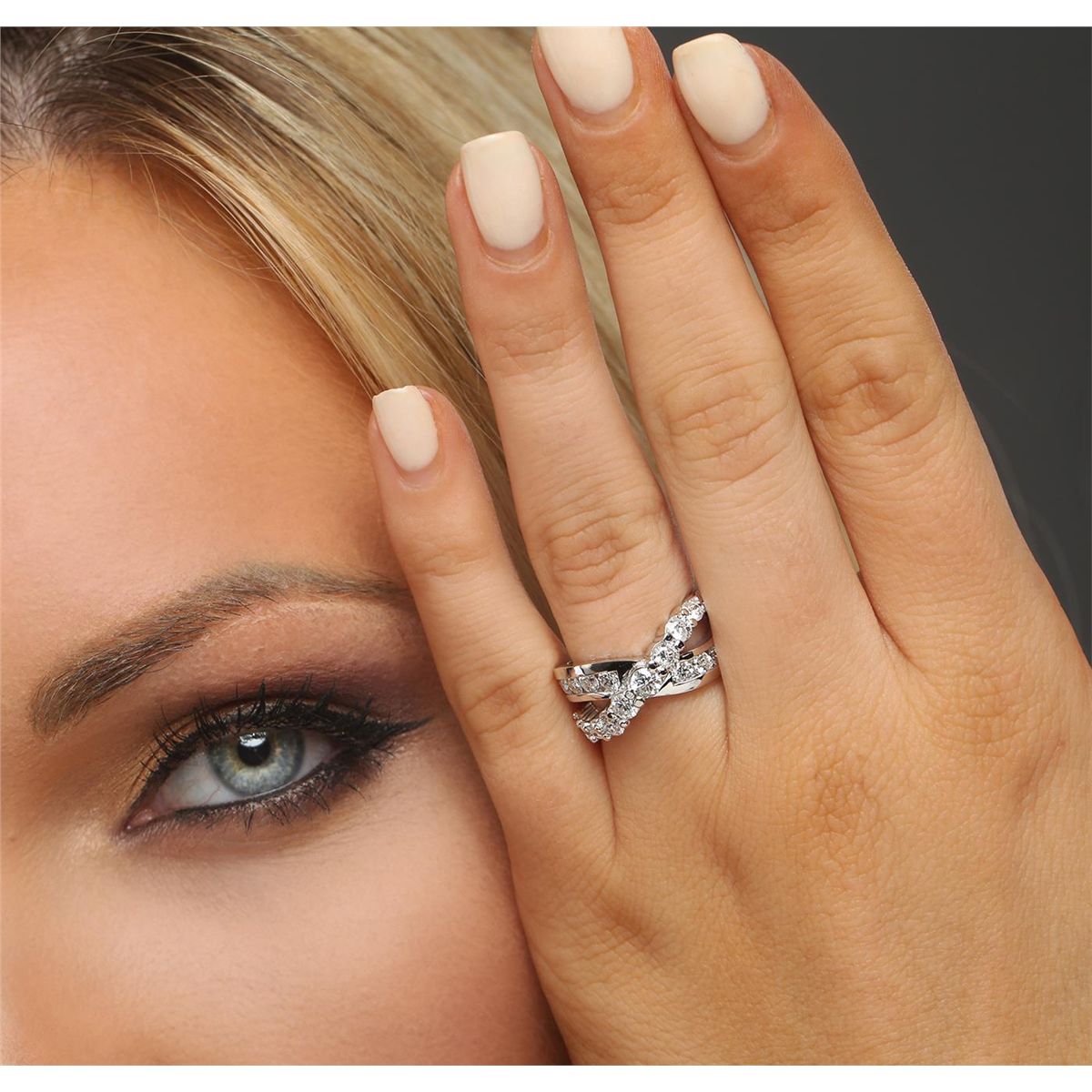 One electronically tested 14KT white gold ladies combination cast & assembled diamond ring with a bright polish finish. Identified with markings of "K14". Condition is new. Containing: Twenty-One prong set round brilliant cut diamonds, measuring 3.10 - 2.00 x 1.53mm (depth est.) approximate total weight of 21 Stones = 1.27ct. Clarity: SI-2 to I-1. Color: I - J, Cut is Good. All diamonds are graded in the mounting, unless otherwise stated. Total Weight of Diamonds 1.27ct. Total Weight of Ring 7.70 grams. GGL Appraised at $5,325.00.