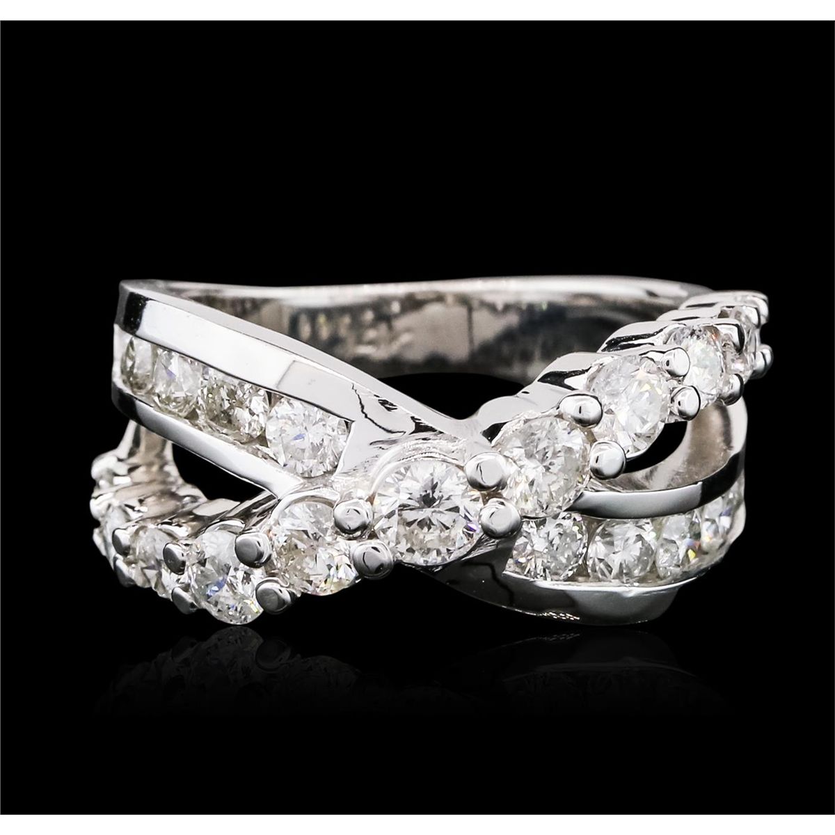 One electronically tested 14KT white gold ladies combination cast & assembled diamond ring with a bright polish finish. Identified with markings of "K14". Condition is new. Containing: Twenty-One prong set round brilliant cut diamonds, measuring 3.10 - 2.00 x 1.53mm (depth est.) approximate total weight of 21 Stones = 1.27ct. Clarity: SI-2 to I-1. Color: I - J, Cut is Good. All diamonds are graded in the mounting, unless otherwise stated. Total Weight of Diamonds 1.27ct. Total Weight of Ring 7.70 grams. GGL Appraised at $5,325.00.
