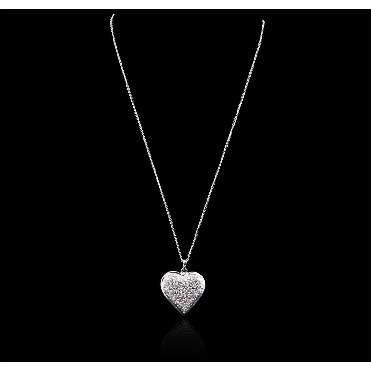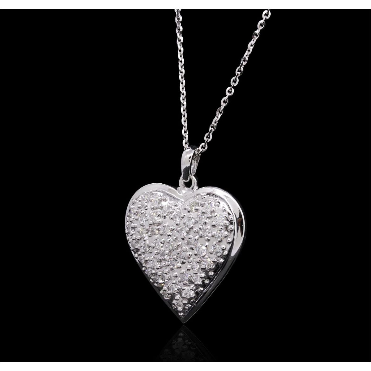 One electronically tested 14KT white gold ladies cast diamond pendant & chain 18.3" long, cable link with a lobster claw clasp with a bright polish finish. Identified with markings of "14K". Condition is new. Containing: Forty-Four prong set round brilliant cut diamonds, measuring 2.00 - 2.00 x 1.20mm (depth est.) approximate total weight of 44 Stones = 1.29ct. Clarity: SI-2 to I-1. Color: J - K, Cut is Good. All diamonds are graded in the mounting, unless otherwise stated. Total Weight of Diamonds 1.29ct. Total Weight of Pendant & Chain 13.60 grams. GGL Appraised at $5,230.00.