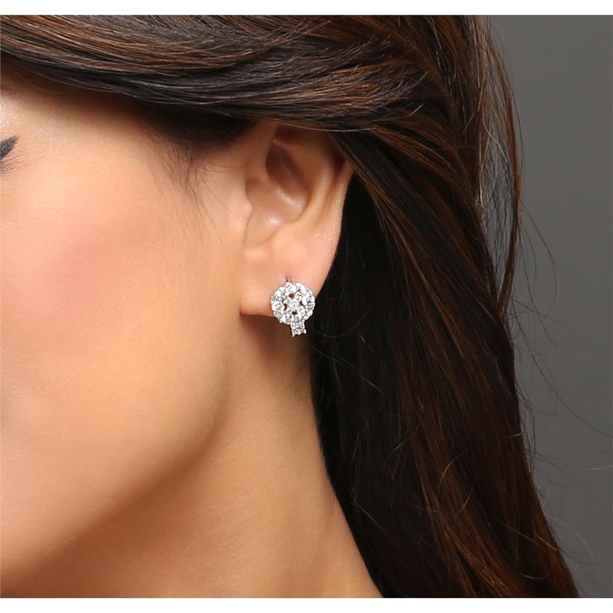 One pair electronically tested 14KT white gold ladies cast diamond earrings with hinged clip backs with a bright polish finish. Identified with markings of "14K". Condition is new. Containing: Twelve prong set round brilliant cut diamonds, measuring 2.90 - 2.90 x 1.74mm (depth est.) approximate total weight of 12 Stones = 1.07ct. Clarity: SI-1 to I-1. Color: H - I, Cut is Good. Thirty prong set round brilliant cut diamonds, measuring 1.30 - 1.30 x 0.78mm (depth est.) approximate total weight of 30 Stones = 0.24ct. Clarity: I-1 to I-2. Color: H - I, Cut is Good. All diamonds are graded in the mounting, unless otherwise stated. Total Weight of Diamonds 1.31ct. Total Weight of Earrings 4.00 grams. GGL Appraised at $4,900.00.
