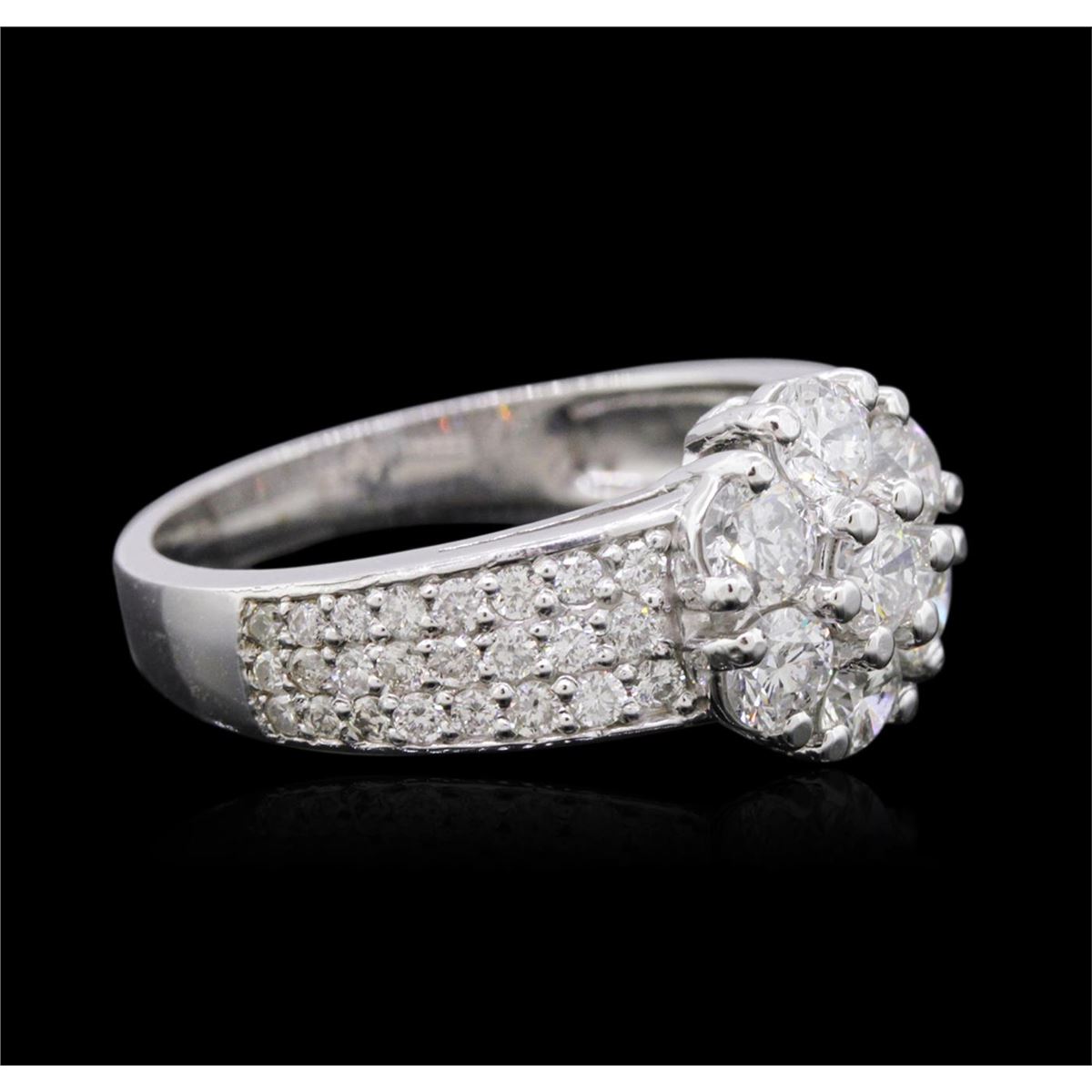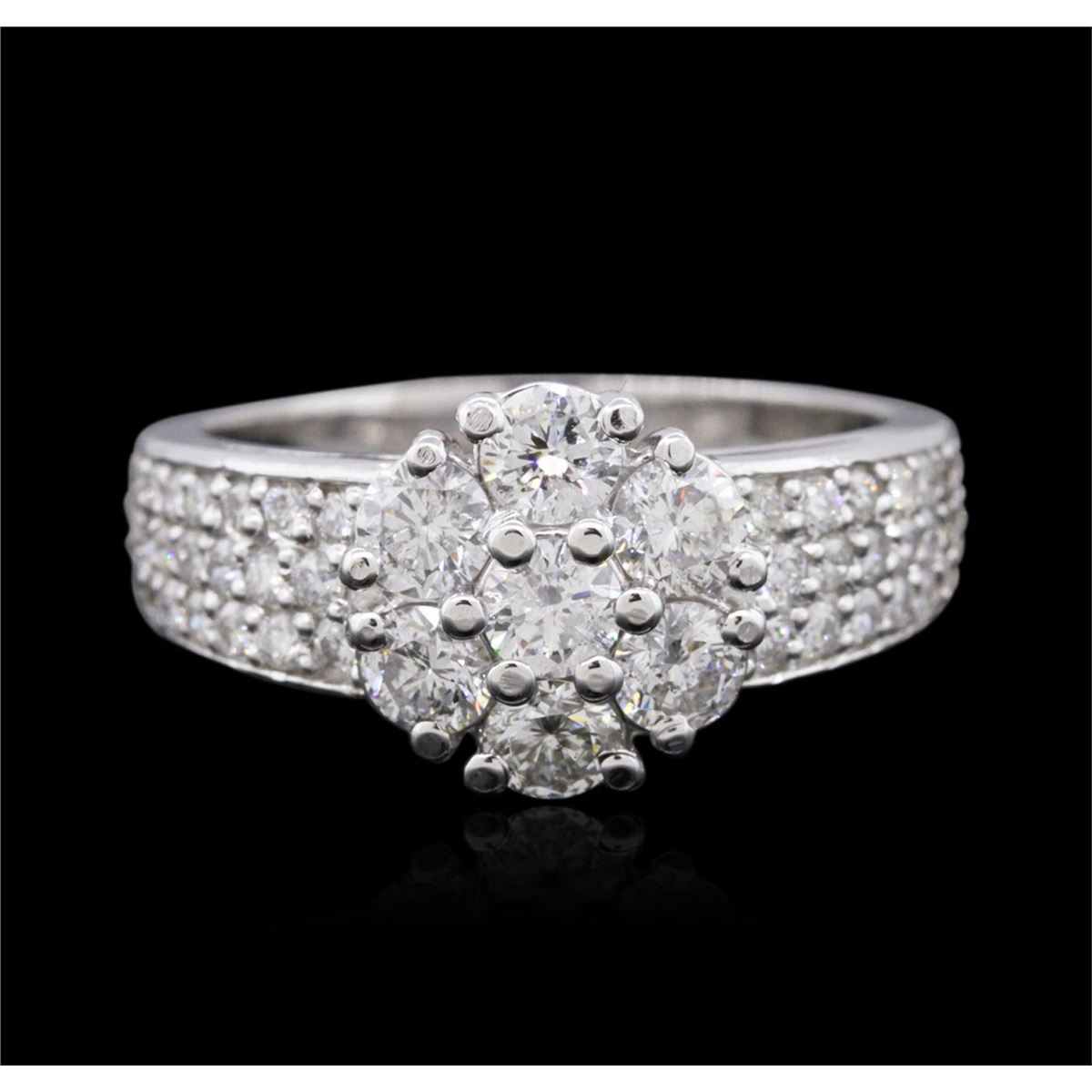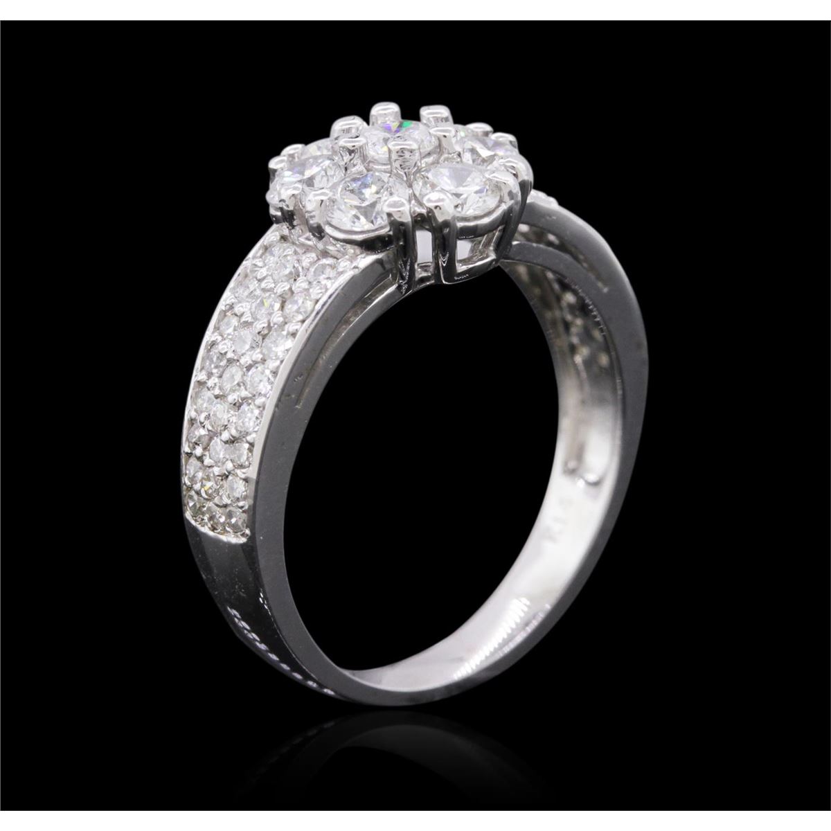 One electronically tested 14KT white gold ladies combination cast & assembled diamond ring with a flat shank with a bright polish finish. Identified with markings of "K14". Condition is new. Containing: Seven prong set round brilliant cut diamonds, measuring 3.20 - 3.20 x 1.92mm (depth est.) approximate total  weight of 7 Stones = 0.84ct. Clarity: SI-2. Color: I - J, Cut is Good. Forty-Eight prong set round brilliant cut diamonds, measuring 1.40 - 1.40 x 0.84mm (depth est.) approximate total  weight of 48 Stones = 0.48ct. Clarity: SI-2 to I-2. Color: H - I, Cut is Good. All diamonds are graded in the mounting, unless otherwise stated. Total Weight of Diamonds 1.32ct. Total Weight of Ring 4.00 grams. GGL Appraised at $4,645.00.