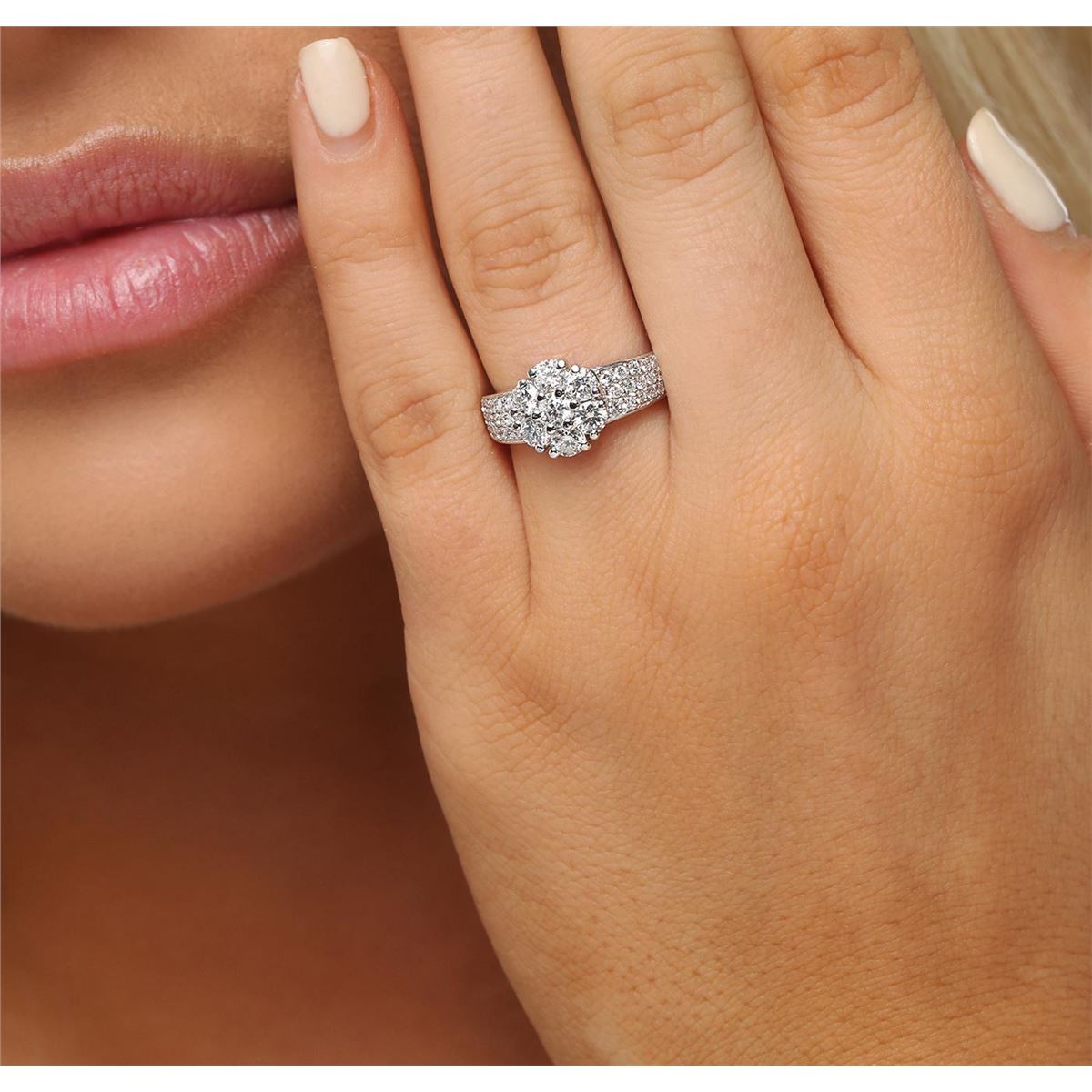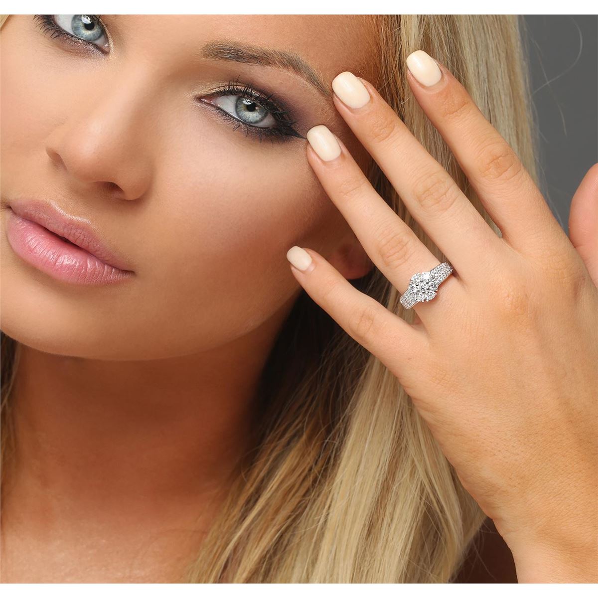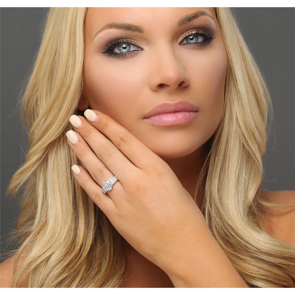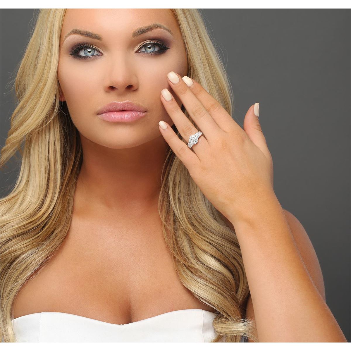 One electronically tested 14KT white gold ladies combination cast & assembled diamond ring with a flat shank with a bright polish finish. Identified with markings of "K14". Condition is new. Containing: Seven prong set round brilliant cut diamonds, measuring 3.20 - 3.20 x 1.92mm (depth est.) approximate total  weight of 7 Stones = 0.84ct. Clarity: SI-2. Color: I - J, Cut is Good. Forty-Eight prong set round brilliant cut diamonds, measuring 1.40 - 1.40 x 0.84mm (depth est.) approximate total  weight of 48 Stones = 0.48ct. Clarity: SI-2 to I-2. Color: H - I, Cut is Good. All diamonds are graded in the mounting, unless otherwise stated. Total Weight of Diamonds 1.32ct. Total Weight of Ring 4.00 grams. GGL Appraised at $4,645.00.