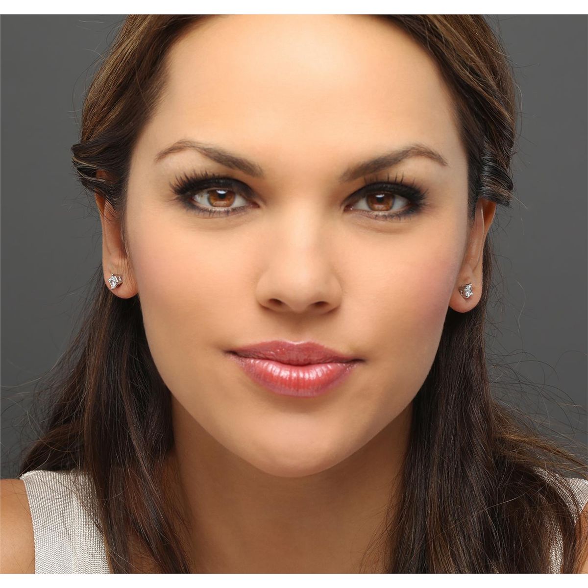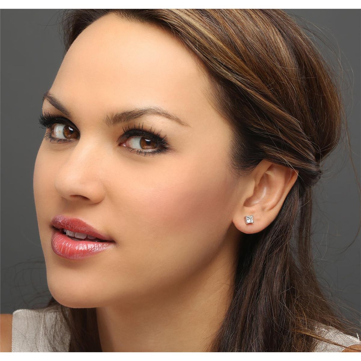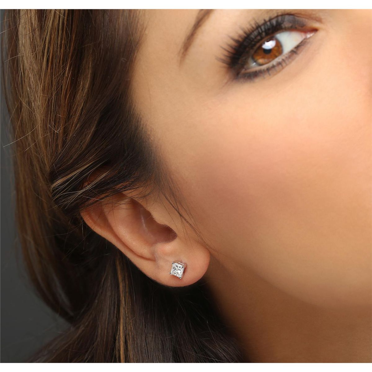 One pair electronically tested 14KT white gold cast & assembled diamond solitaire earrings with screw backs. Bright polish finish. Condition is new, good workmanship. Containing: One prong set princess cut diamond, measuring 4.95 x 4.35 x 3.30mm (depth est.) approximate weight of 0.68ct with a strong blue fluorescence. Graded in the setting. Clarity: I-1. Color: 75.9%. Table 85.1%. One prong set princess cut diamond, measuring 4.50 x 4.45 x 3.30mm (depth est.) approximate weight of 0.64ct with a medium blue fluorescence. Graded in the setting. Clarity: I-1. Color: 74.2%. Table 83.2%. Total Weight of Diamonds 1.32ct. Total Weight of Earrings 1.15 grams. AIG Appraised at $4,095.00.
